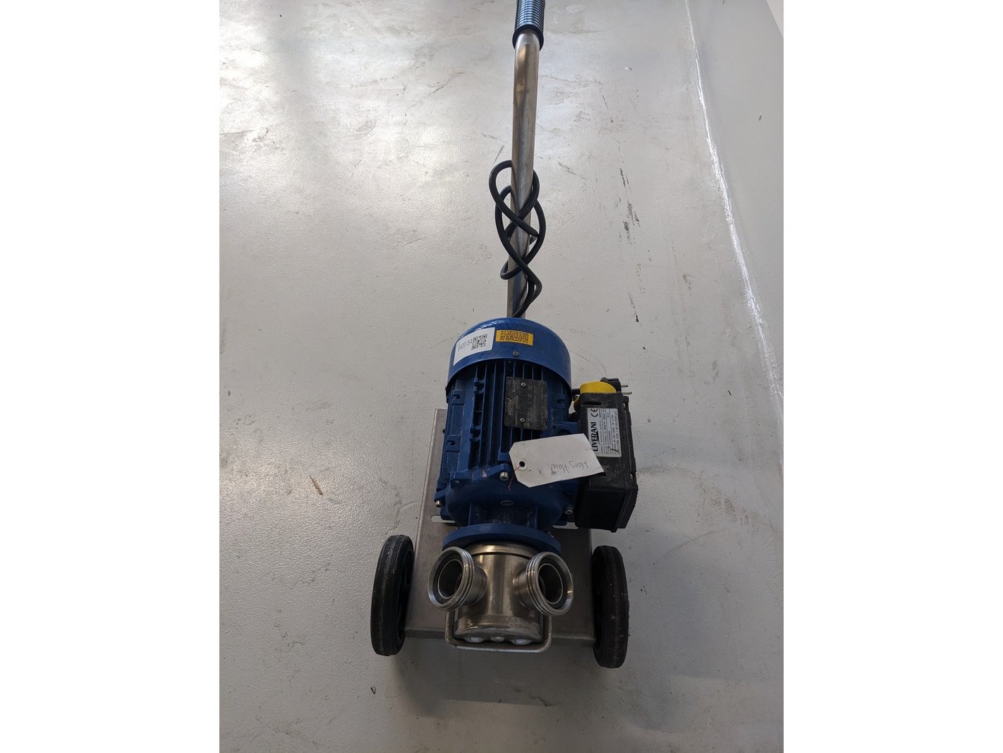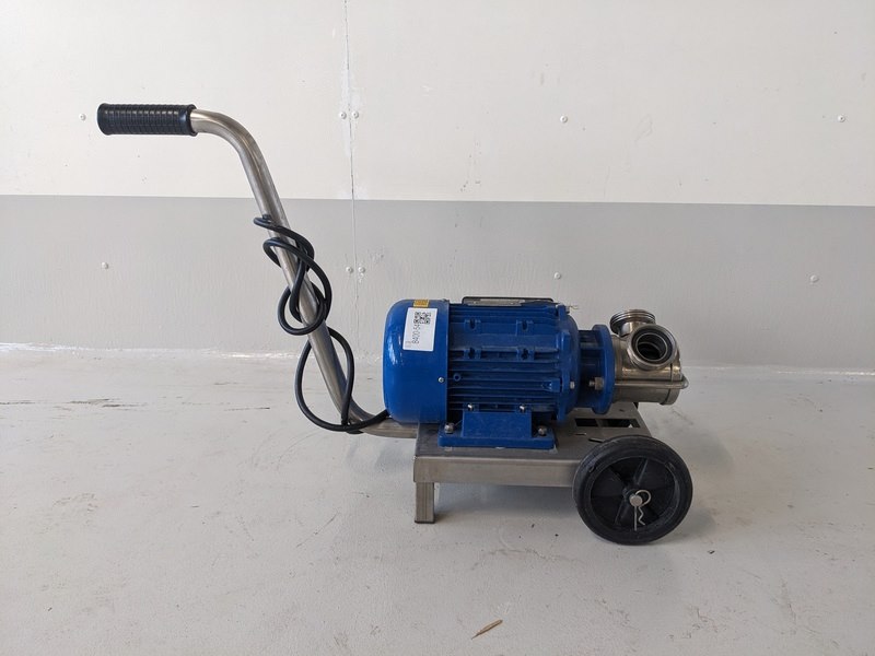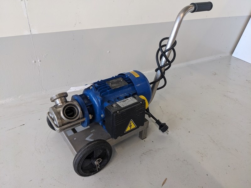 Merk: Liverani Product: Lobben pomp kar Kleur: blauw Afmeting: L75cm x B30cm x H55cm Conditie: gebruikt Specificaties: EPDM lobbenpomp/verdringer pomp, aansluitingen 2", 220V elektromotor 1500W, op handkar / onderstel