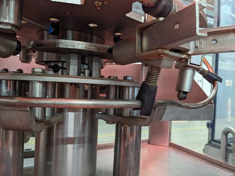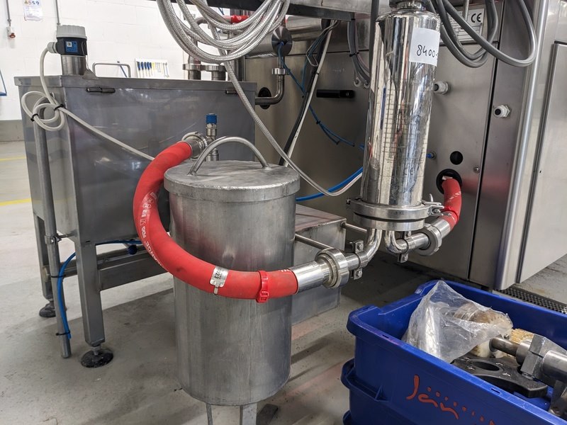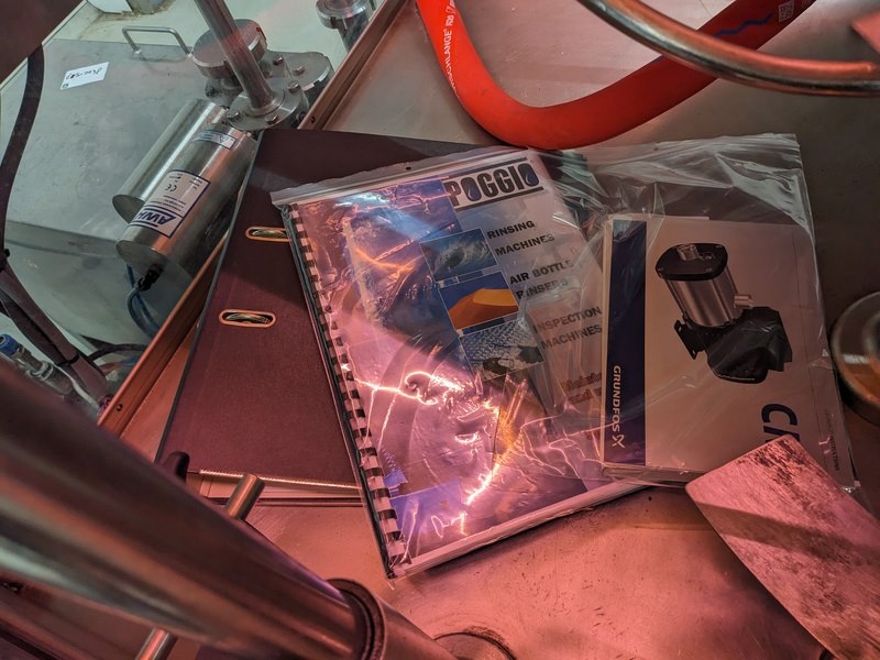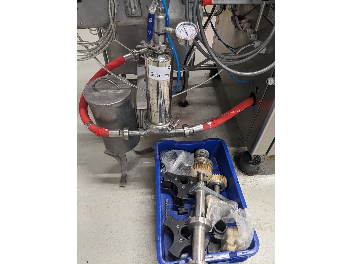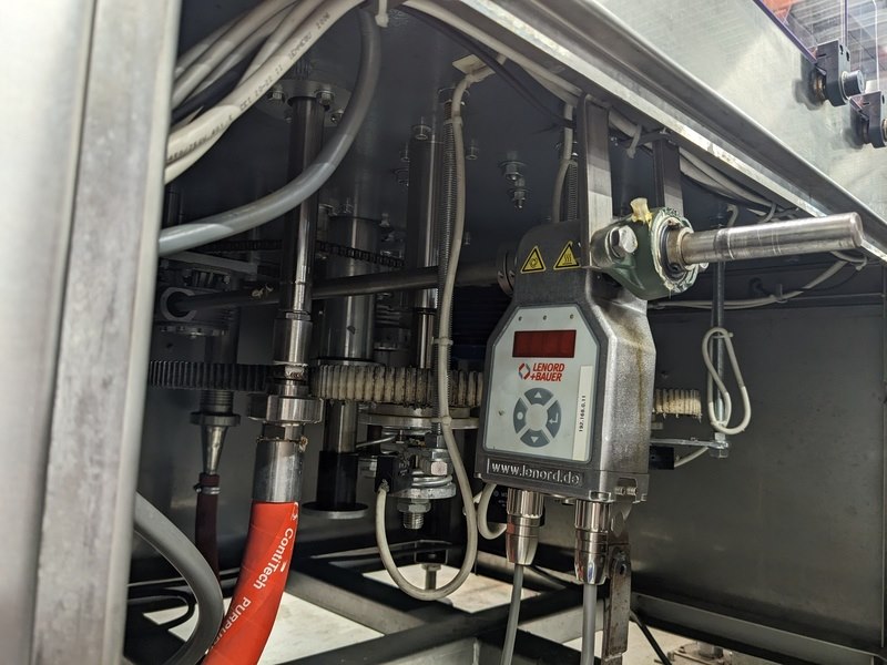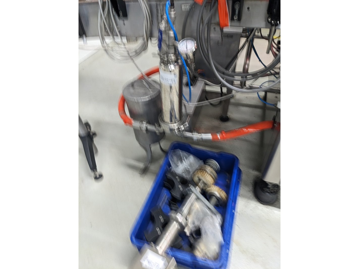 Merk: Poggio Product: Rinser / flessen spoeler Materiaal: RVS Afmeting: L200cm x B125cm x H213cm BouwJaar: 2006 Conditie: gebruikt Specificaties: -Flessen spoeler, capaciteit max 1500 eenheden/uur in combinatie met 6 spoelkoppen, (5 extra koppen zijn aanwezig) links-rechts, fleshoogte ca 190 to 380 mm. bedieningskast, rinsbak 56x40x73cm met pomp en filter, niveau controle, pneumatische afsluiters -Inclusief formaatdelen, inclusief reserve onderdelen bestaande uit: in en uitvoersterren, tussenstukken, verwisselbare grijperbekken