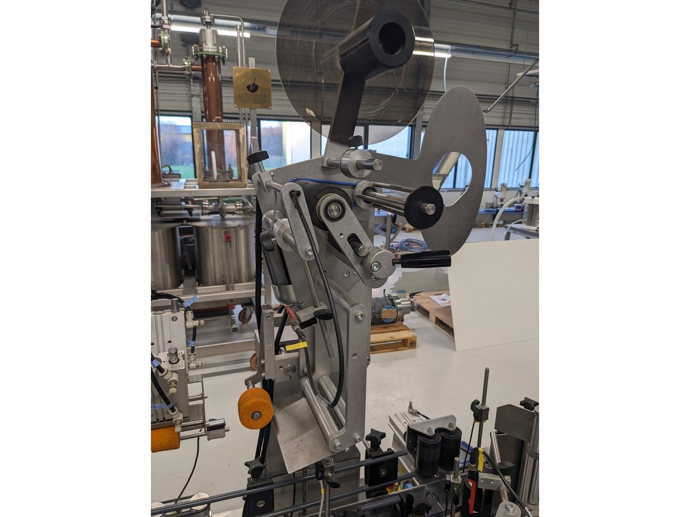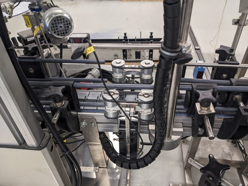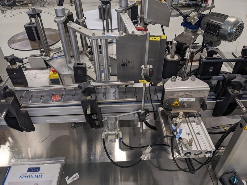 Merk: CDA Product: Zelfklevende etiketeer machine Kleur: blauw Materiaal: RVS Afmeting: L445cm x B180cm x H210cm BouwJaar: 2014 Conditie: gebruikt Specificaties: -Lineaire zelfklevende etiketeer met 6 stations (inclusief dopzegel station), centrale station bediening, pneumatisch gestuurd, capaciteit ca 2500 bottles/hour, geschikt voor ronde en vorm flessen, diverse wikkelrichtingen etiketten mogelijk, digitaal touchscreen bediening, inclusief diverse formaat en reserve en instel onderdelen -inclusief externe stationdrager met Siemens digitale bediening en aansluitkast, zodat er bijvoorbeeld jerrycans met gelabeld kunnen worden.