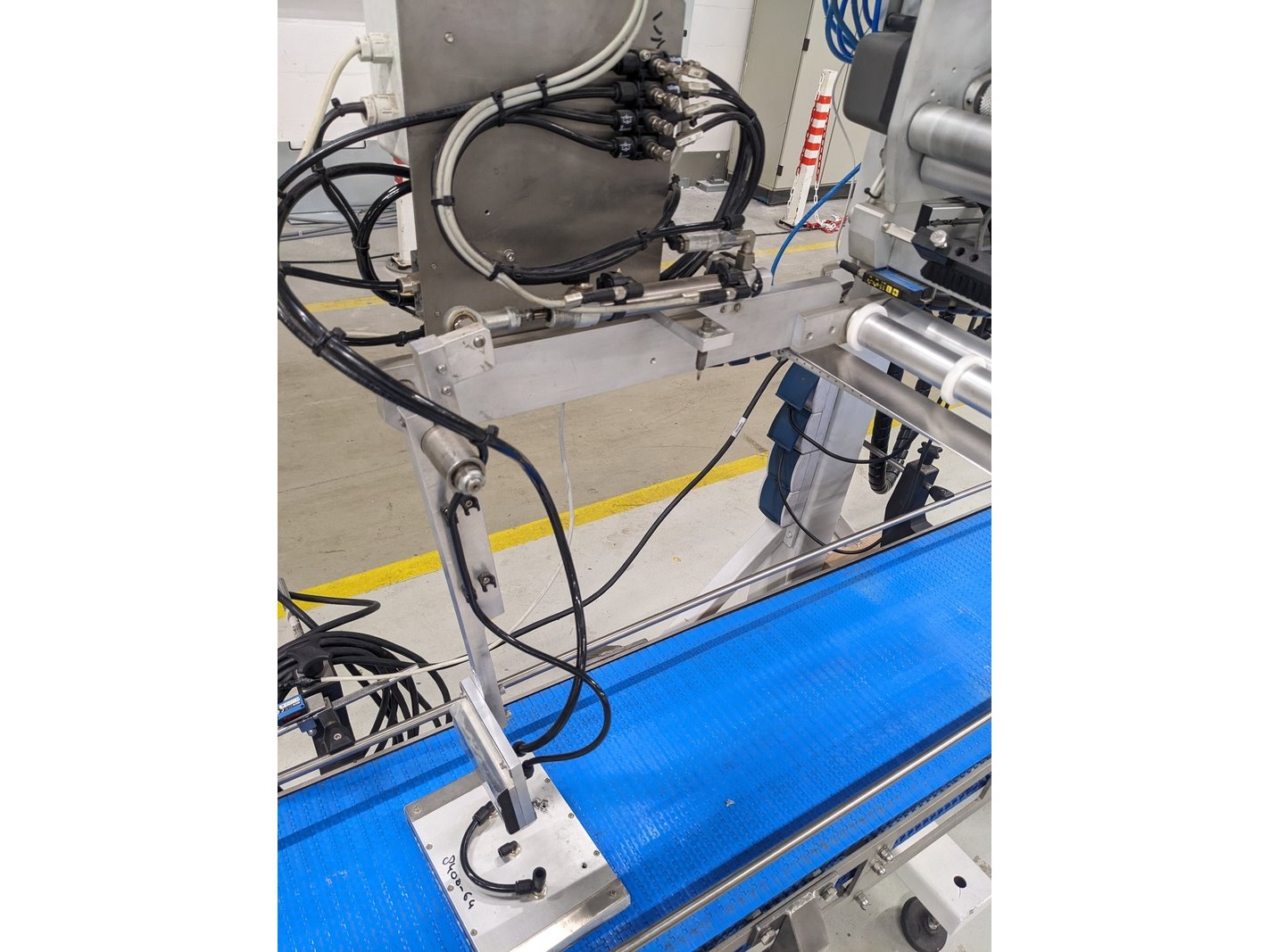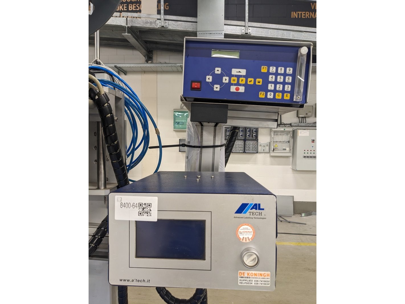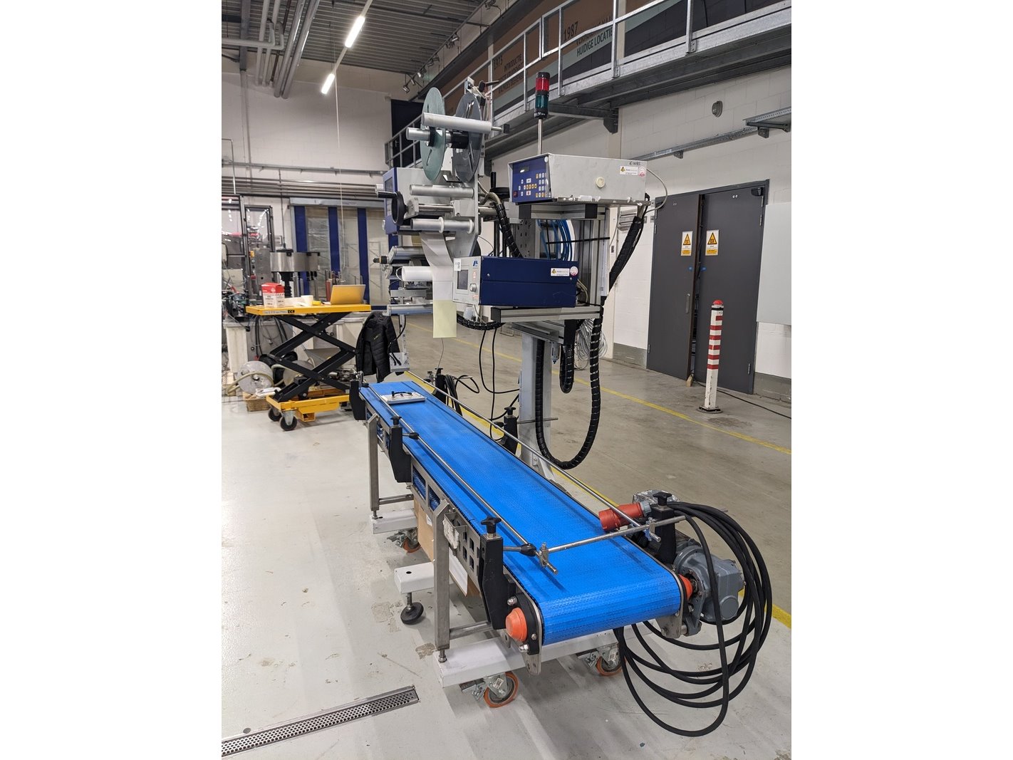 Merk: Altech Product: Zelfklevende etiketeer machine Kleur: blauw Materiaal: Aluminium Afmeting: L270cm x B80cm x H225 BouwJaar: 2006 Conditie: gebruikt Specificaties: -Label machine met Valentin SPE162 printer, zelfklevende etiketten formaat A5 en A7, capaciteit max 1500 dozen / hour, touch screen bediening, zwenkwielen, uitgevoerd met kunststof schakelband 270x35cm -Incl diverse reserve onderdelen en 4 dozen voorraad etiketrollen/carbonrollen