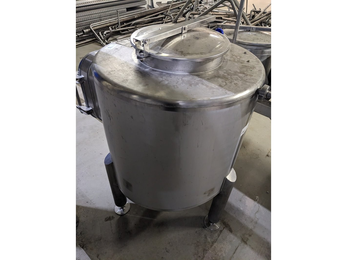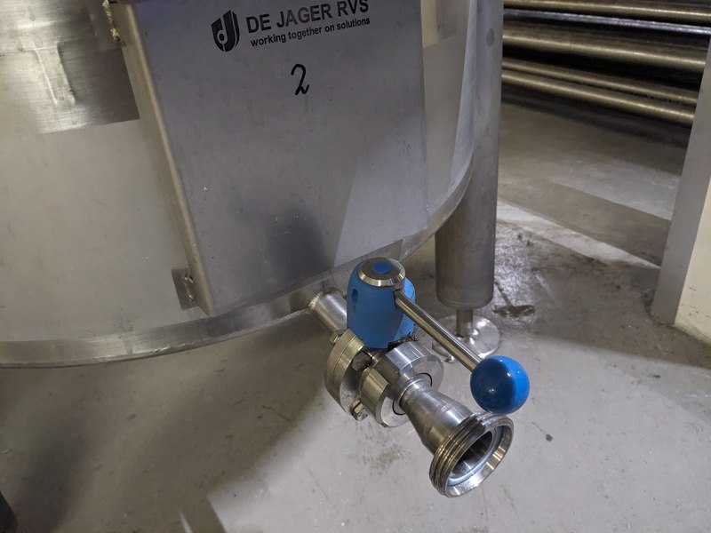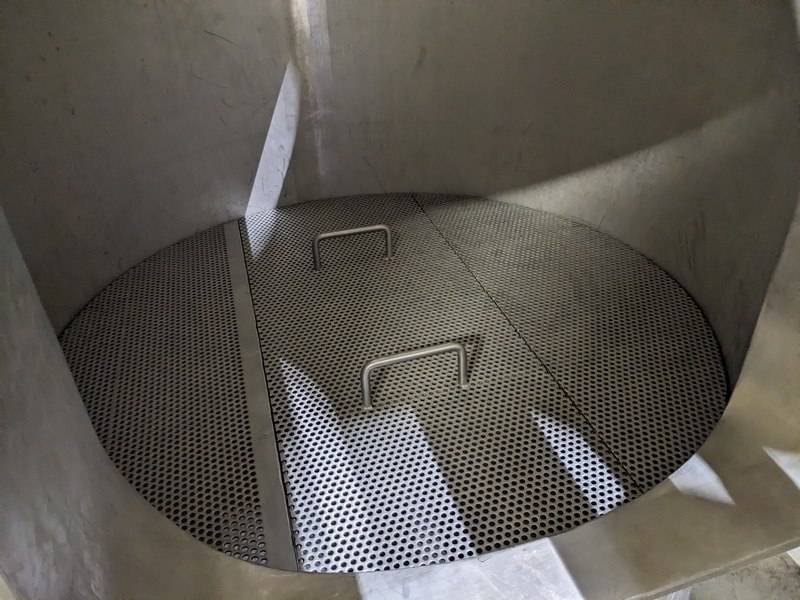 Merk: De Jager Product: Extractie tank Materiaal: RVS Afmeting: H130cm x D80cm Conditie: gebruikt Specificaties: tank circa 375 liter op 3 stelbare steunpoten, 1x boven rond mangat 42cm, 1x zij vierkant mangat 55x42cm, uitneembare 3 delige zeefbodem, aftapkraan onder en vulaansluiting boven