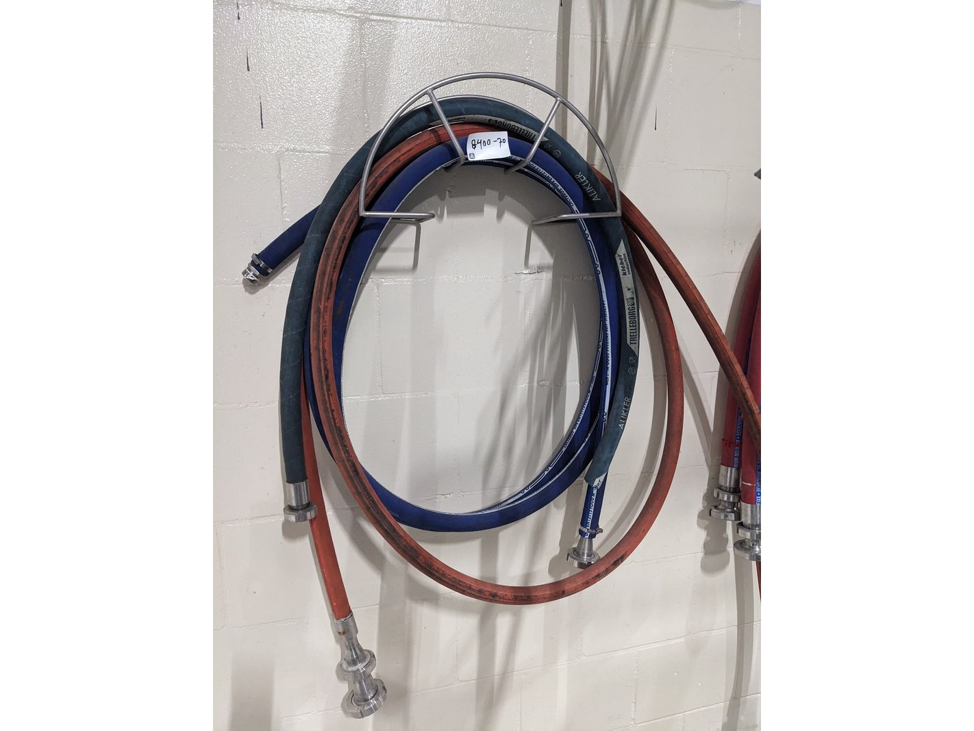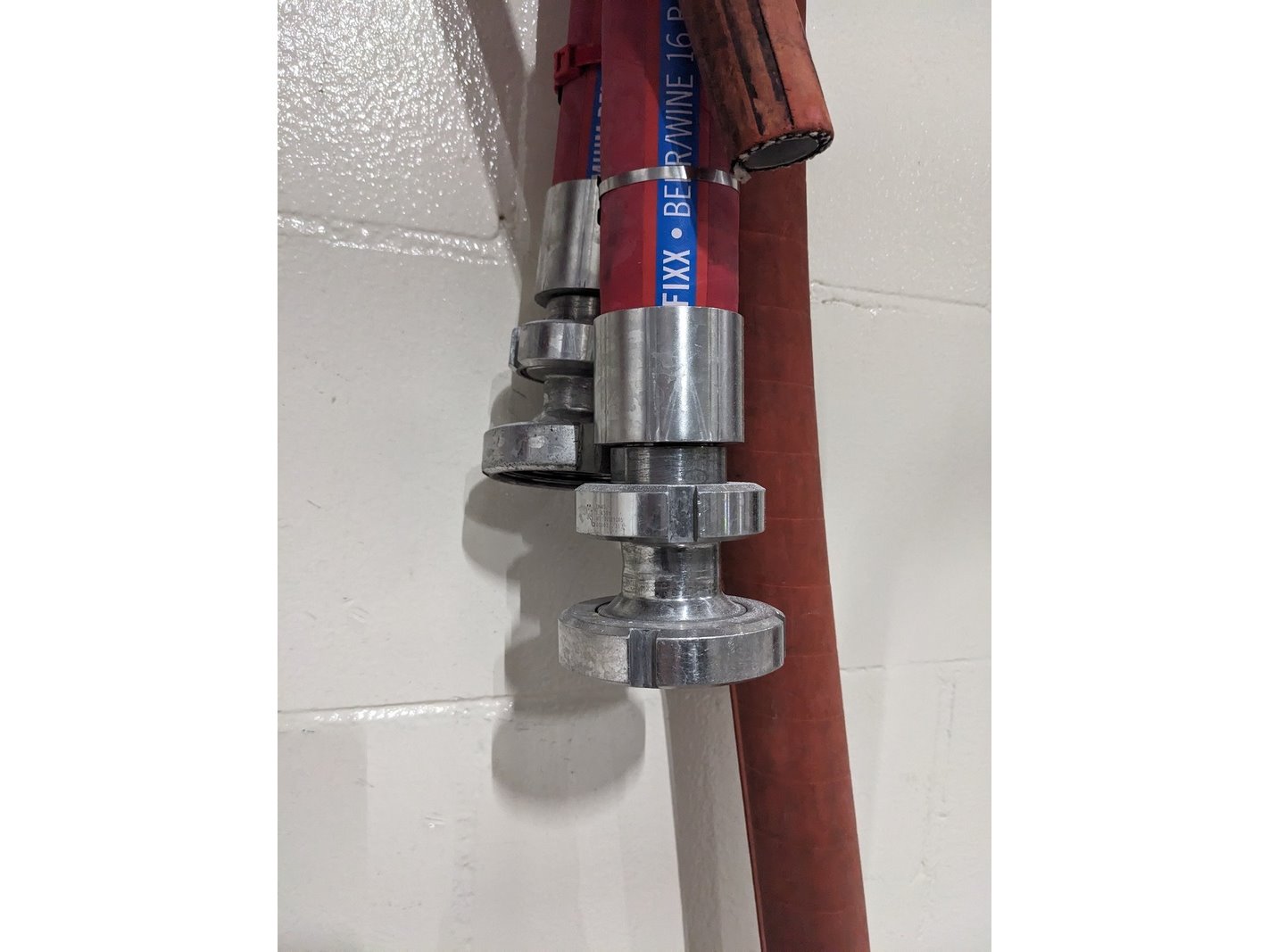 Product: Koppelslang Kleur: blauw/rood Conditie: gebruikt Specificaties: 2x opslagrek, met DN 40 en DN 50 koppelingen