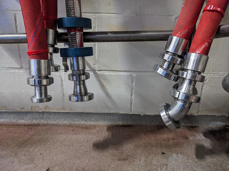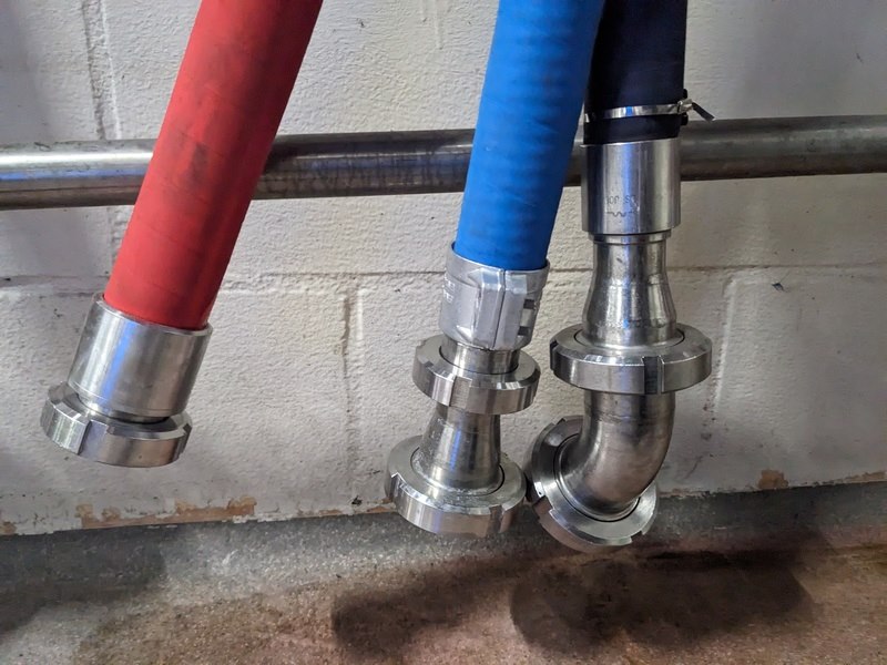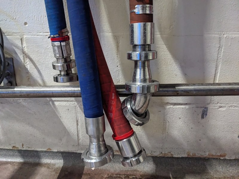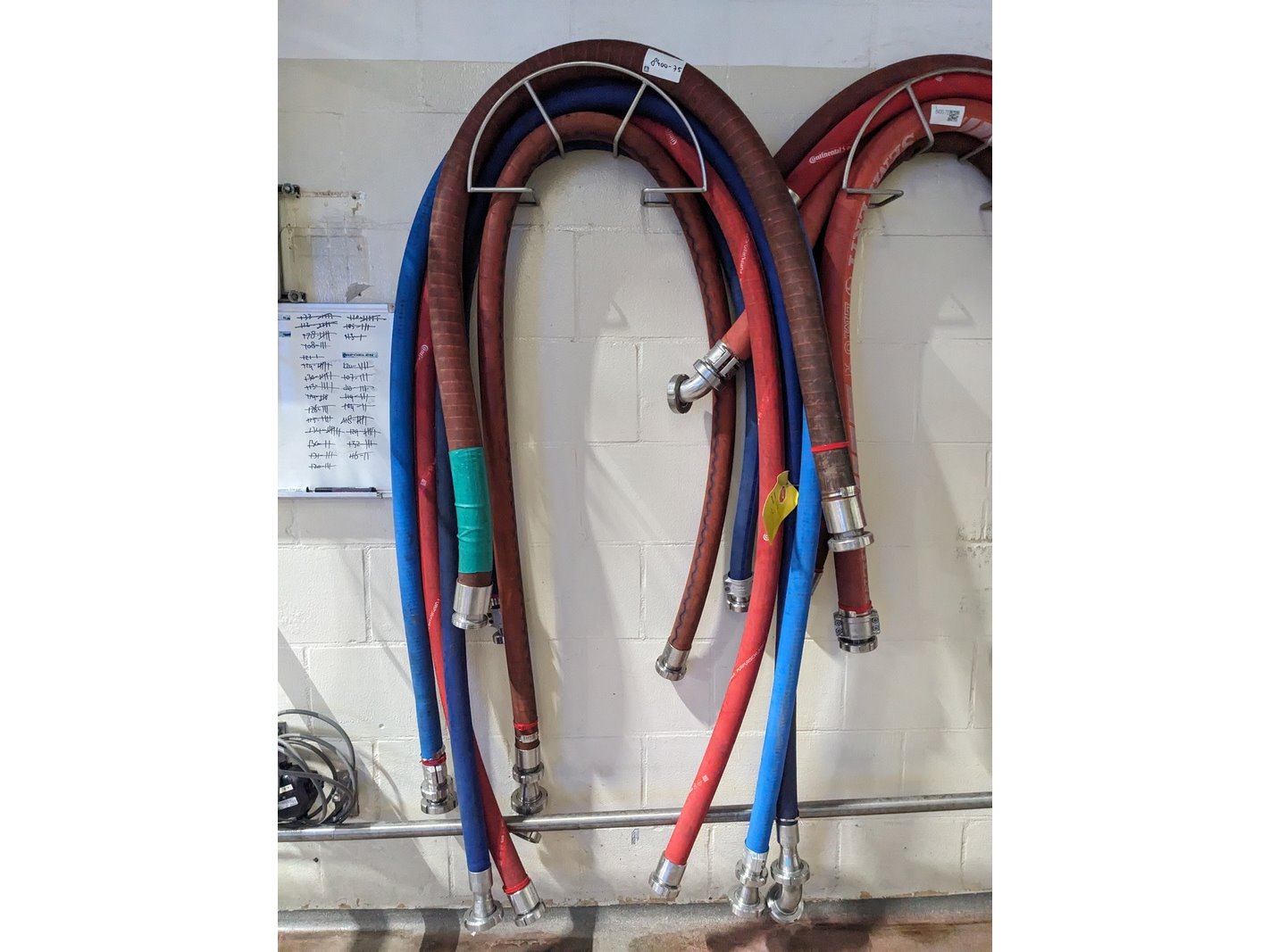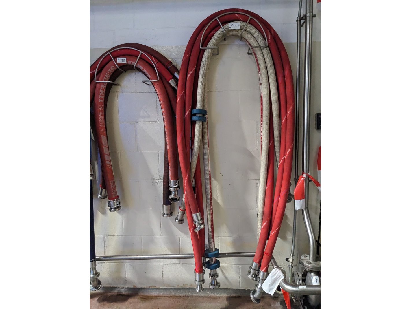 Product: koppelslangen Kleur: blauw/rood Conditie: gebruikt Specificaties: 3x opslagrek, met DN40 en DN50 koppelingen