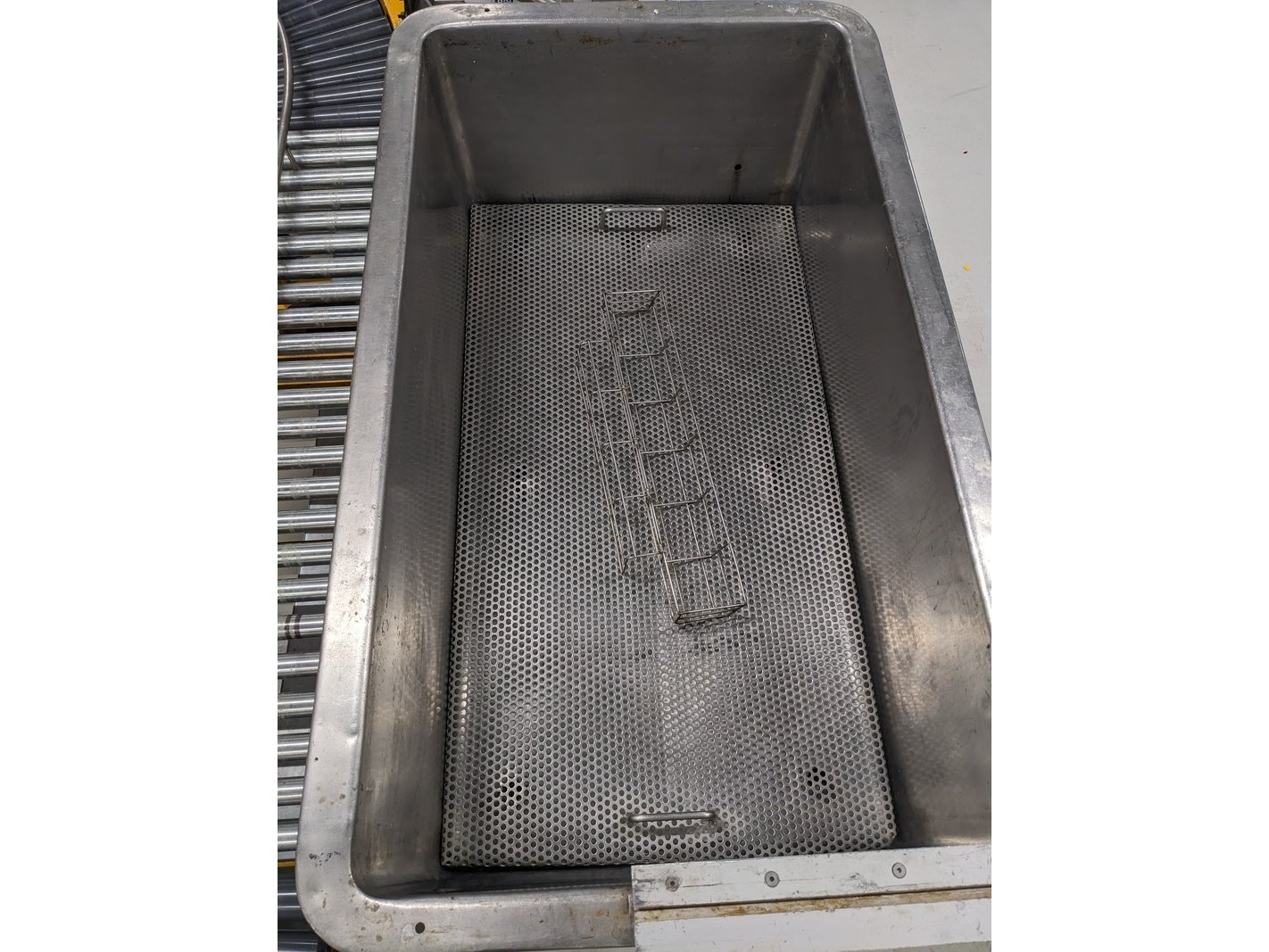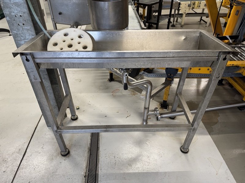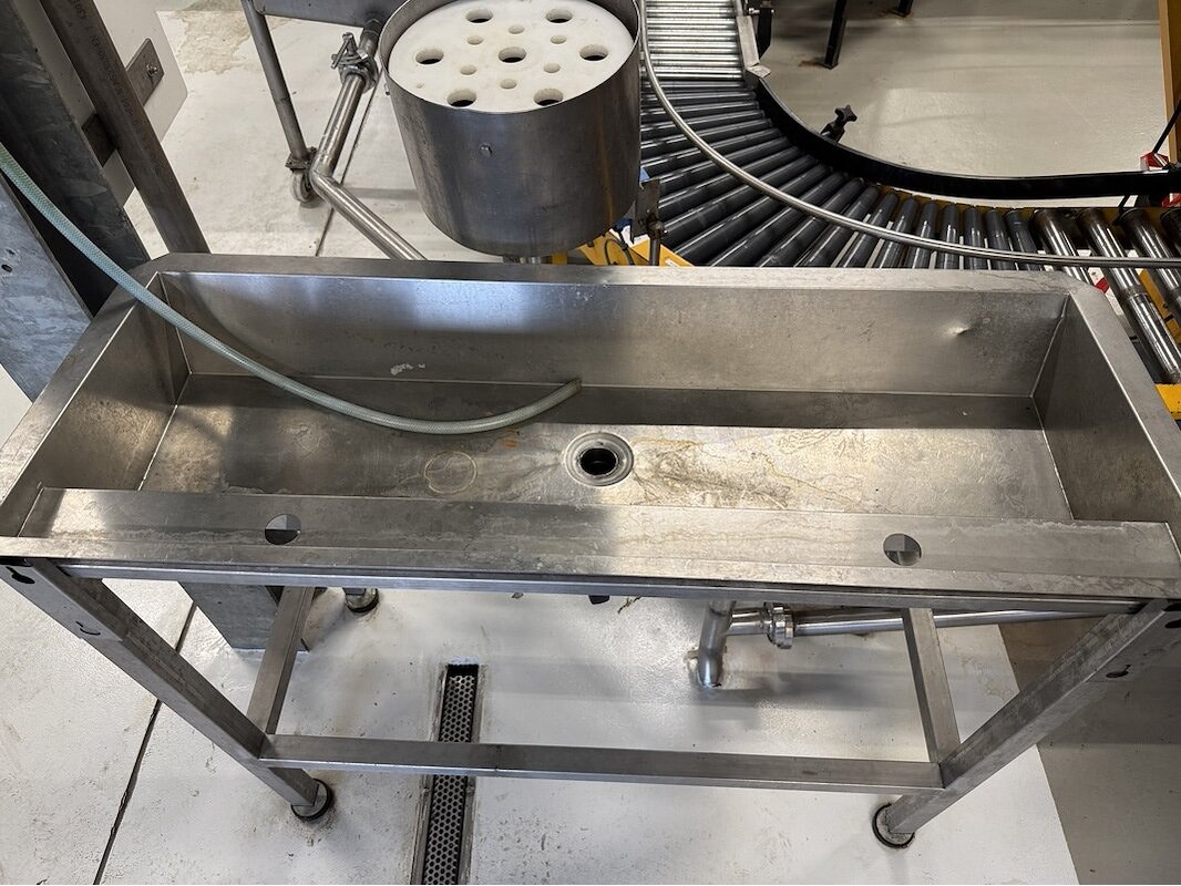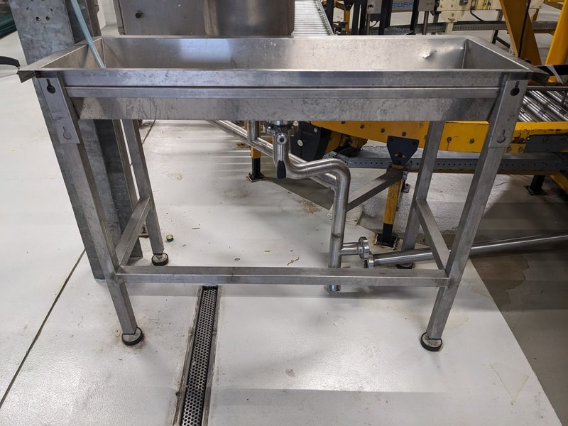 Product: RVS spoelbak Materiaal: RVS Afmeting: L130cm x B75cm x H100cm Conditie: gebruikt Specificaties: 2x spoelbak, 1x met bodem zeef, DN50 koppeling, op bokwielen, kleine bak: L120cm x D47cm x H98cm met afsluiter, bakken moeten nog losgekoppeld worden van vaste leiding.