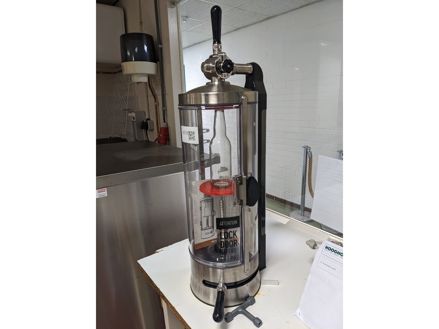 Merk: Pegas Product: Flessenvuller Materiaal: RVS Afmeting: hoogte 75cm BouwJaar: 2019 Conditie: gebruikt Specificaties: manuele tegendruk flessenvuller, geschikt voor flessen met koolzuurhoudende vloeistof, aansluiting voor CO2
