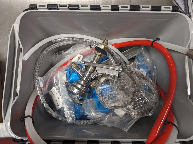 Merk: Quantor Product: Carboniser opstelling Materiaal: RVS Afmeting: hoogte 60cm Conditie: gebruikt Specificaties: carboniseert vloeistoffen, koelerblok, reduceerventiel, pomp 220V, koelspiraal, CO2 inbrenger, statief met leidingwerk en hulpstukken, reserve onderdelen