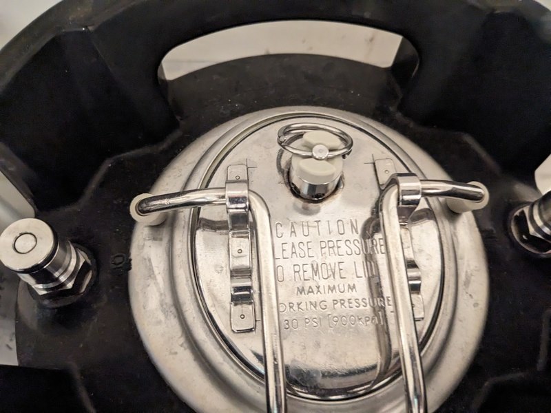 Product: Fust Kleur: zwart Materiaal: RVS Afmeting: H63xD21cm Conditie: gebruikt Specificaties: 5x 19 liter fust, 1x 9 liter, max press: 130psi, met deksel