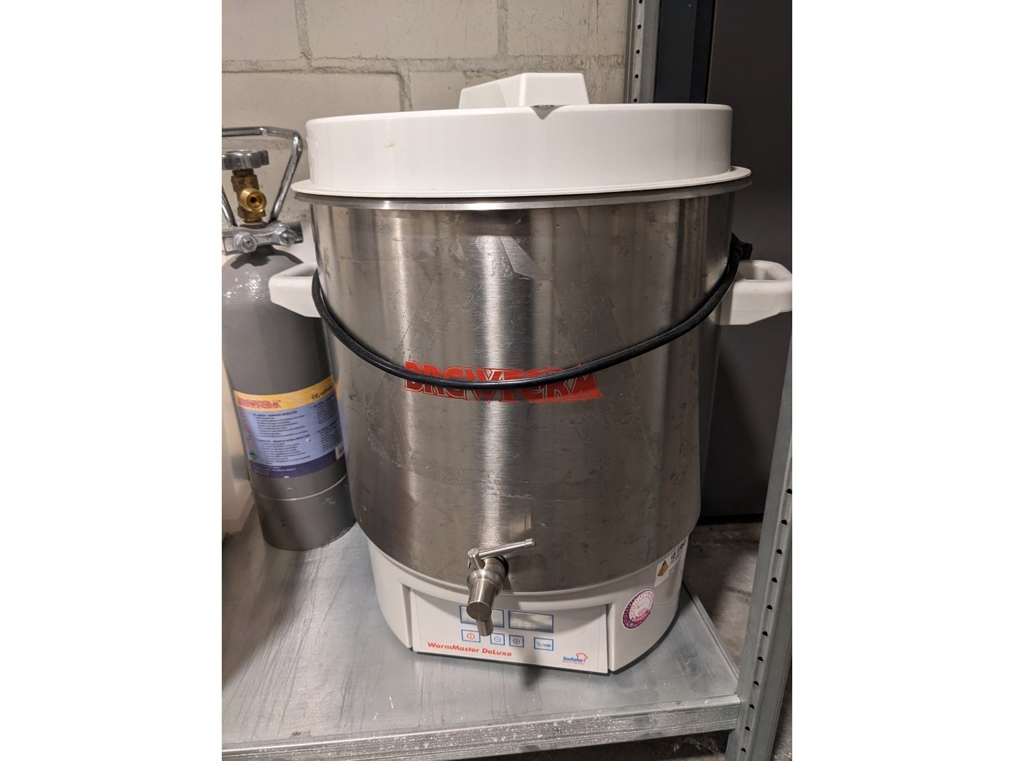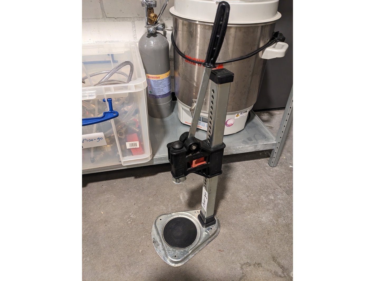 Merk: Ikeggen Product: Inhoud stelling bierbrouw toebehoren Afmeting: 2 meter kastruimte Conditie: gebruikt Specificaties: diverse brouw toebehoren, kroonkurk apparaat, isolatiematerialen, 2x fust 4L, 2x fust 2L, Blikman Quick carboniser, CO2 cilinder, Brewferm brouwketel, diverse fustkoppelingen en toebehoren. Excl. legbordstelling