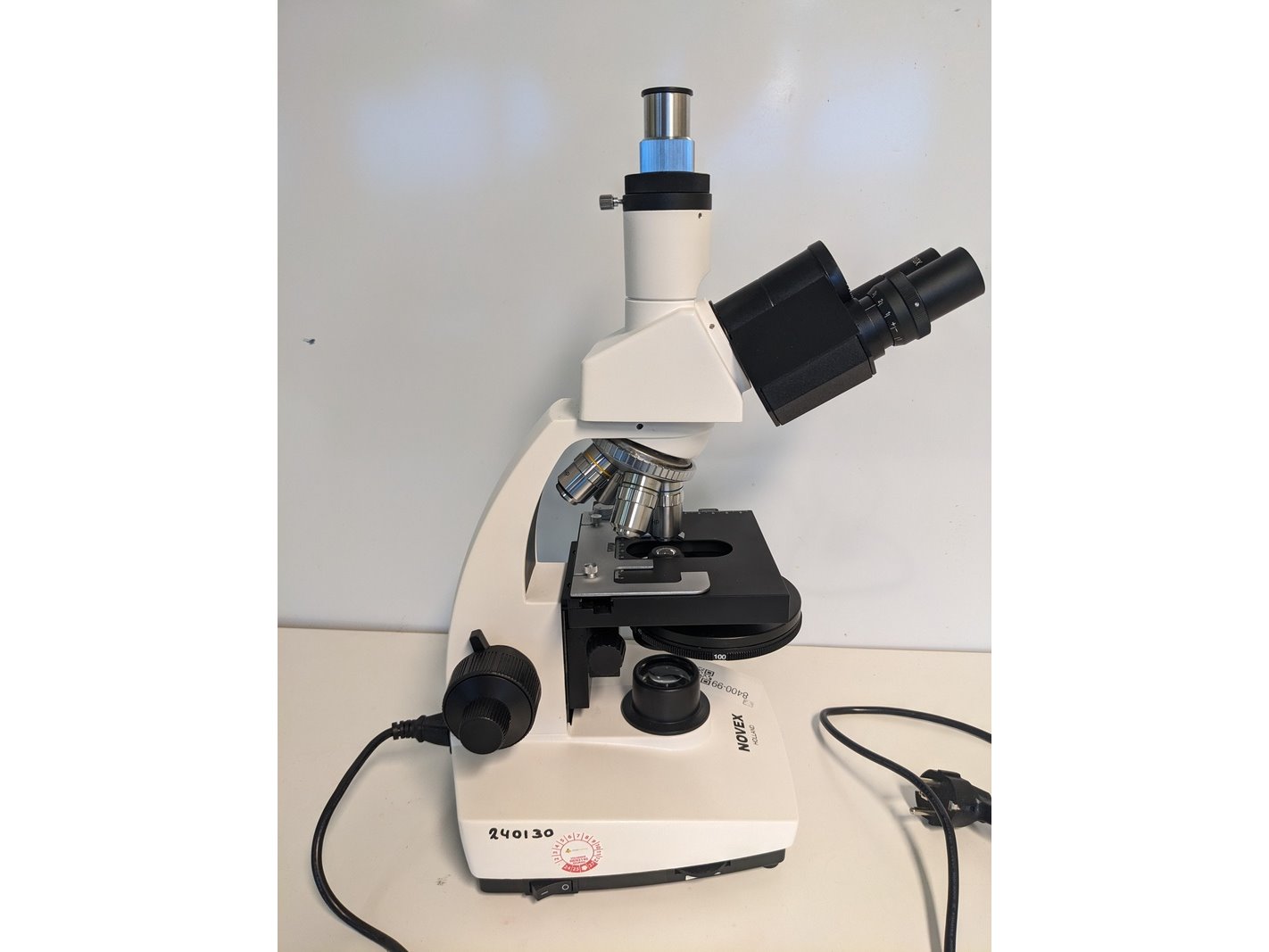 Merk: Novex Holland Product: Optische microscoop Kleur: wit BouwJaar: 2018 Conditie: gebruikt Specificaties: -Optische laboratorium microscoop, 220V, fase-contrast inrichting, binoculair, hoogteverstelling, objectieven diafragma, vergrotings rotor voor vergroting: 10x10, 10x20, 10x40 en 10x100, lamp, kruistafel, fototube, instructieboek -Inclusief objectglazen en olie