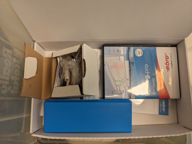 Merk: Winlog Product: Pasteur datalogger Conditie: gebruikt Specificaties: Laboratorium data logger, 1x logger voor in blik, 1x logger voor in fles, dokking station, software, 220V, inclusief toebehoren
