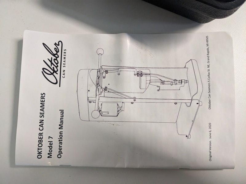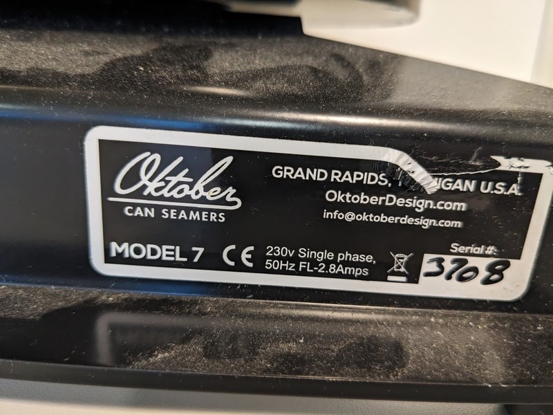Merk: Oktober Product: Can seamer blik sluiter Kleur: zwart Afmeting: hoogte ca 60cm BouwJaar: 2020 Conditie: gebruikt Specificaties: manuele blikken sluiter, 220V, geschikt voor diverse afmetingen, inclusief toebehoren