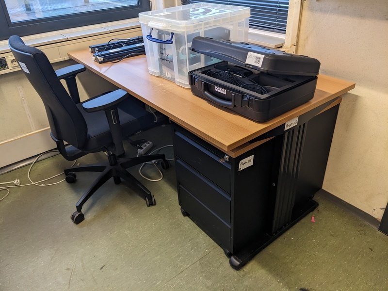 Product: Meubilair laboratorium Conditie: gebruikt Specificaties: Diverse meubels laboratorium Bestaande uit: 1x bureau 160x80cm verstelbaar, bureau stoel, ladenblok, 1x lab tafel wit L345xD60xH90 cm, 1x dubbel midden-meubel wit met legplank L240xD150xH180cm, lab kruk verstelbaar
