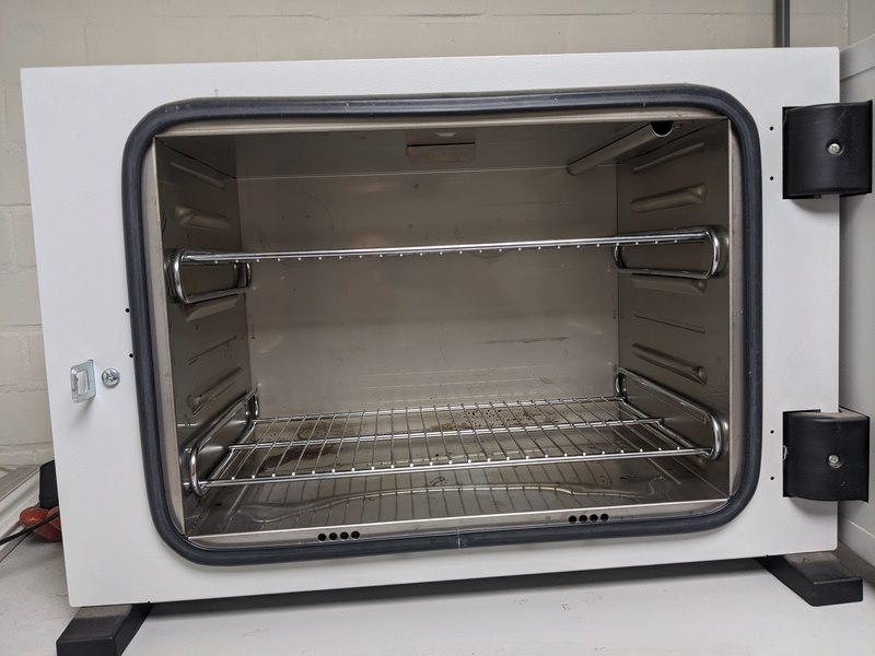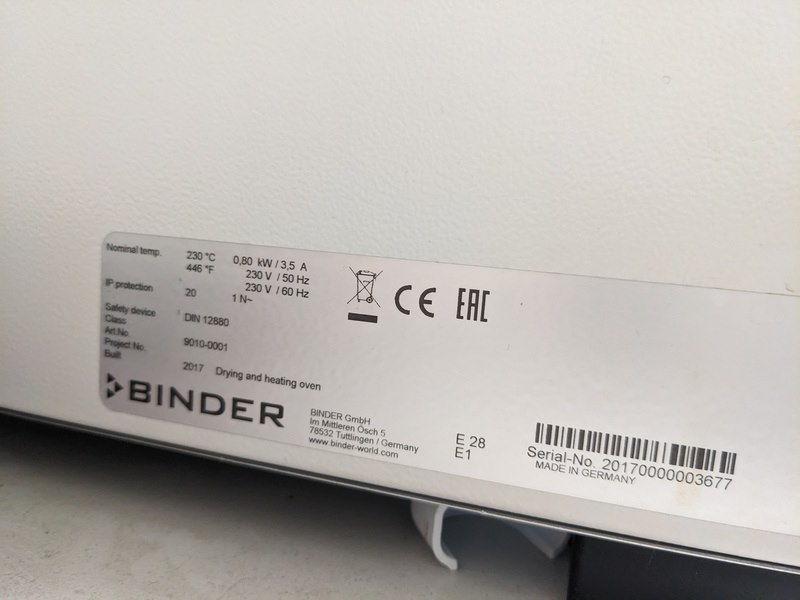 Merk: Binder Product: Droog warmte oven Kleur: wit/rood Afmeting: B60xD45xH40cm BouwJaar: 2017 Conditie: gebruikt Specificaties: Laboratorium droog oven, max 230 graden Celsius, 220V