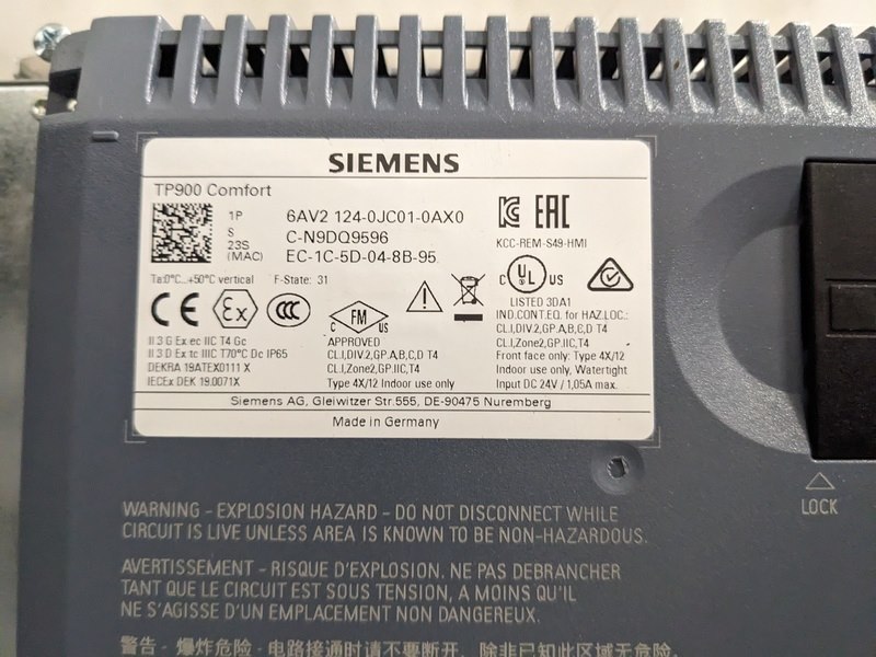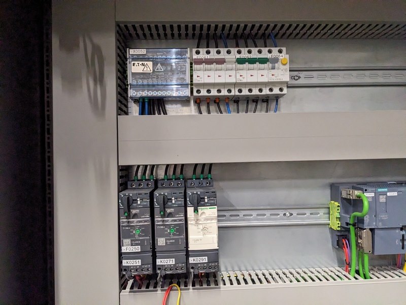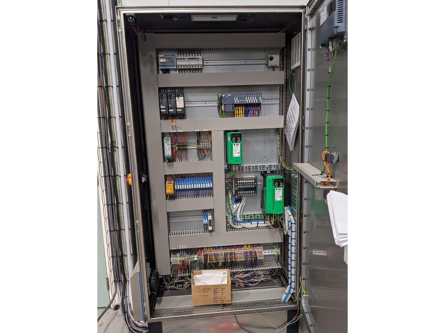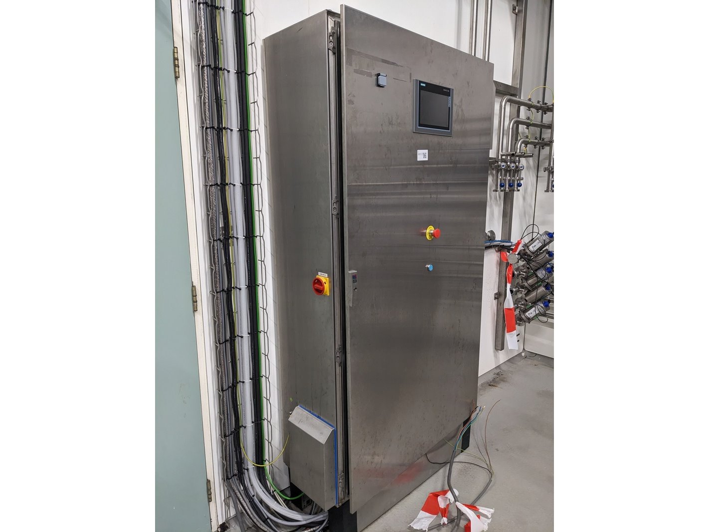 Merk: Siemens Product: Regelkast Materiaal: RVS Afmeting: B108cm x D40cm x H200cm BouwJaar: 2021 Conditie: gebruikt Specificaties: regelkast met deur en Siemens touchscreen bediening, voorzien van diverse elektronische apparatuur, 2 regelaars e.d.