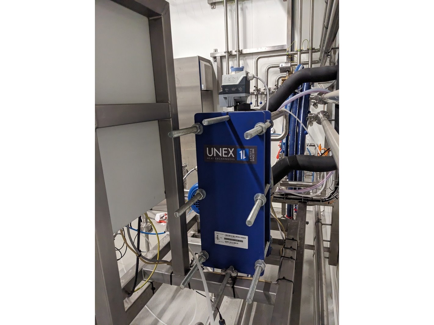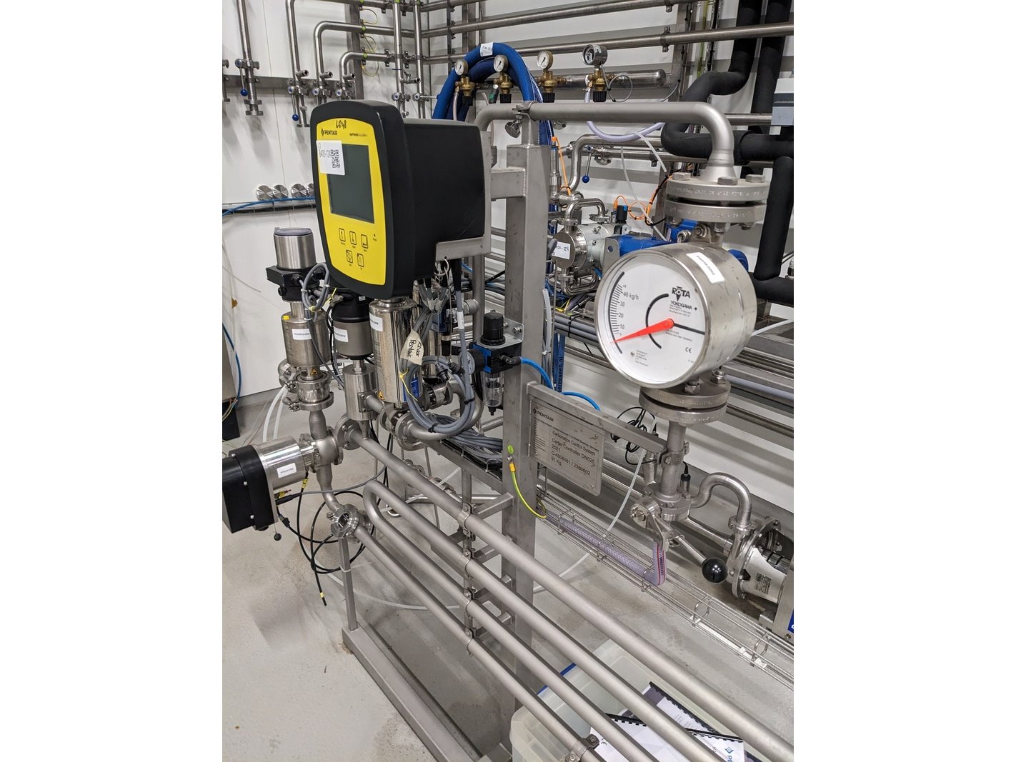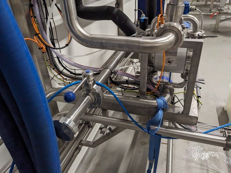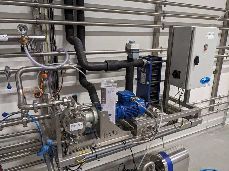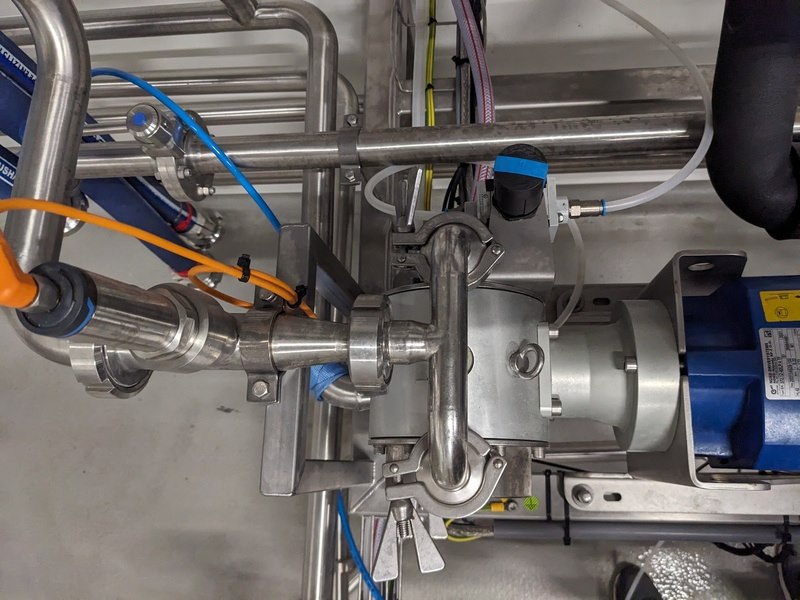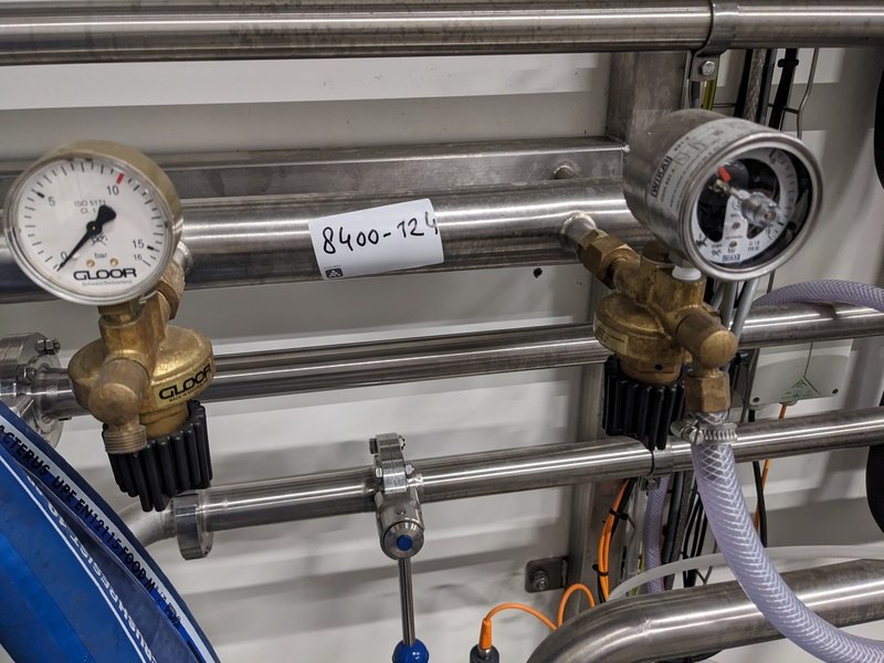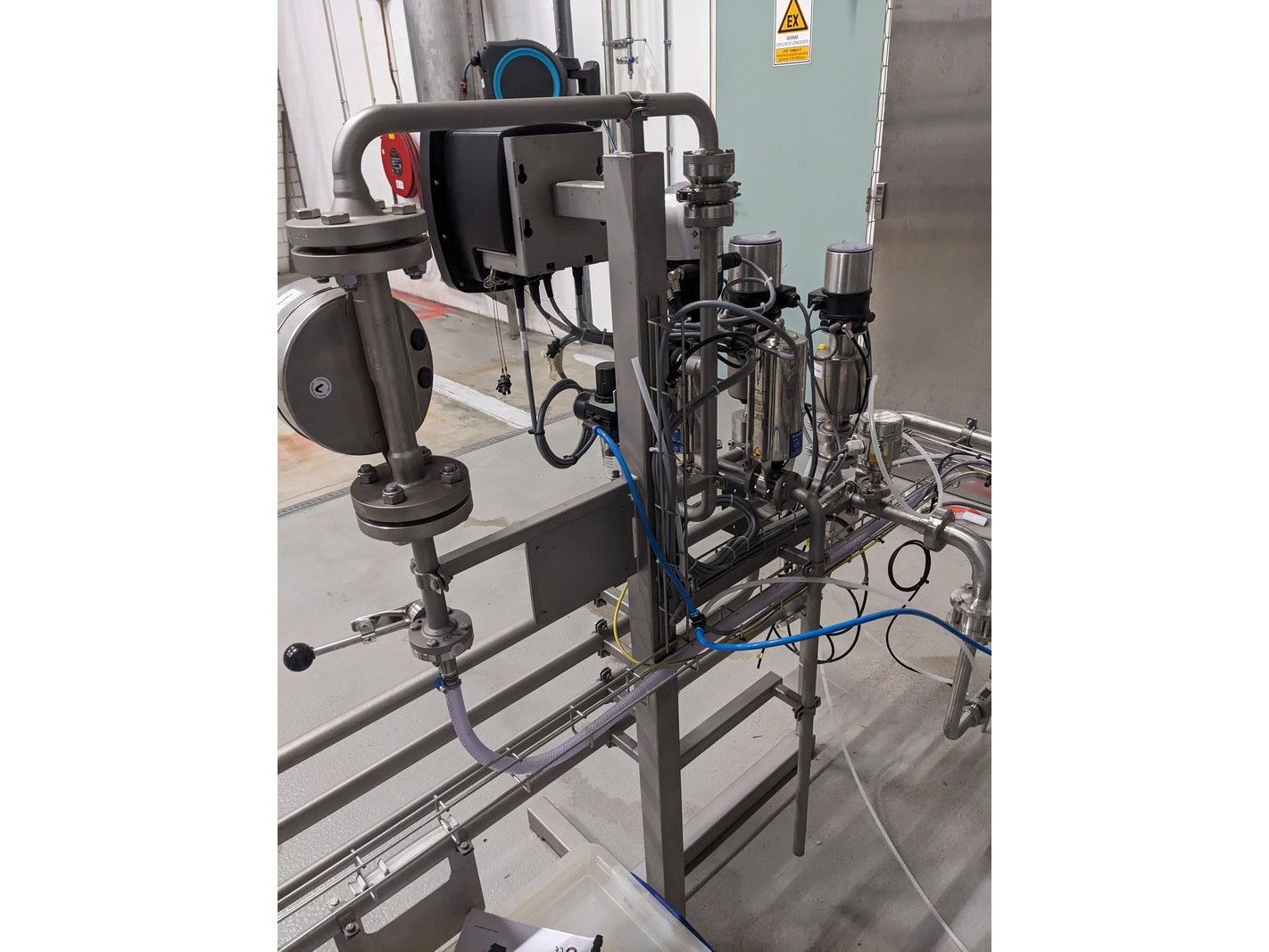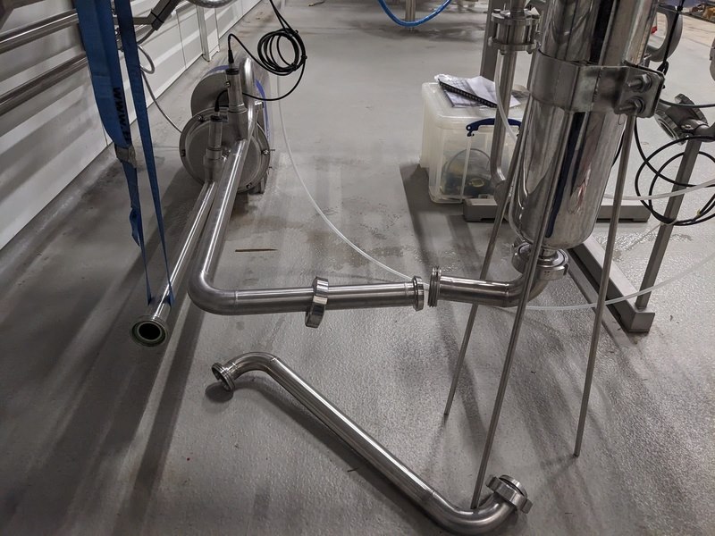 Merk: Pentair Product: Carboniser opstelling Materiaal: RVS 316 Afmeting: L156cm x B160cm x 158cm BouwJaar: 2021 Conditie: gebruikt Specificaties: -Carboniseert vloeistoffen (bubbels), uitgevoerd met sanitair centrifugaal hoofdpomp unit Packo FP2/230-185/302 380V 2000ltr/hr, opvoerhoogte 56mtr, viscositeit cP1, pomphuis en as RVS316, filterunit Technofilter MSC4, product flow 10hectoltr/hr, max 15 hectoliter/hr, DN25, mix elementen 108st -Tapflo pomp 380V t.b.v. koeling, bedieningskast console, leidingwerk vanuit 3 tanks, diverse slangen, 5 pneumatische elektronisch geregelde afsluiters -Instrumenten: over en onderdruk beveiliging, droogloop beveiliging, CO2 herder met reduceer, heat exchanger, 3x koppelslangen