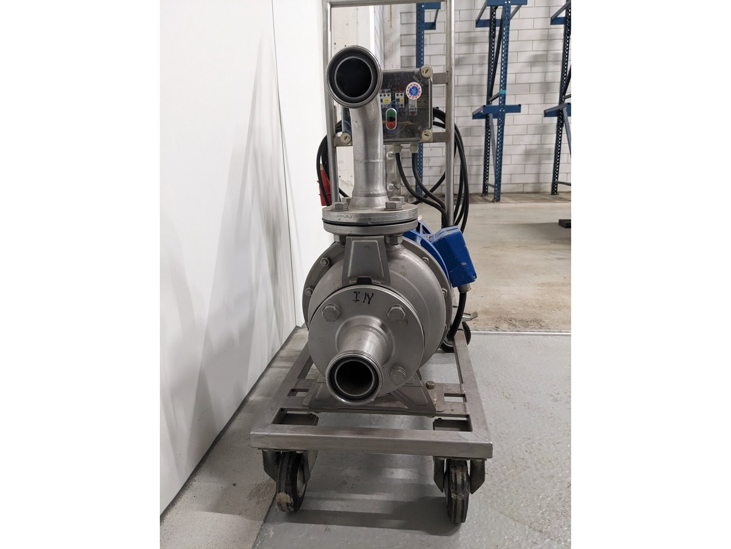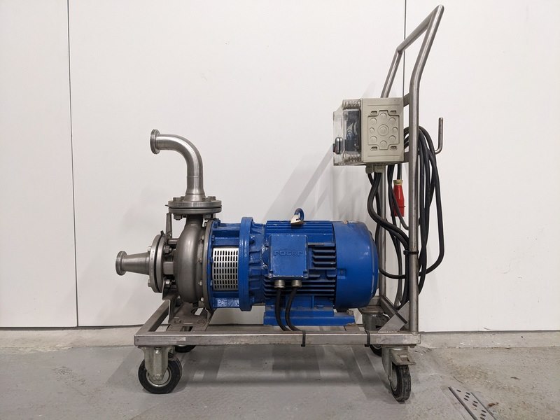 Merk: Wijk&Boerema Product: Atex centrifugaal pomp Kleur: blauw Afmeting: L100cm x B40cm x H110cm Conditie: gebruikt Specificaties: elektromotor 5500W 380V, schakelkast, op verrijdbaar onderstel, DN50