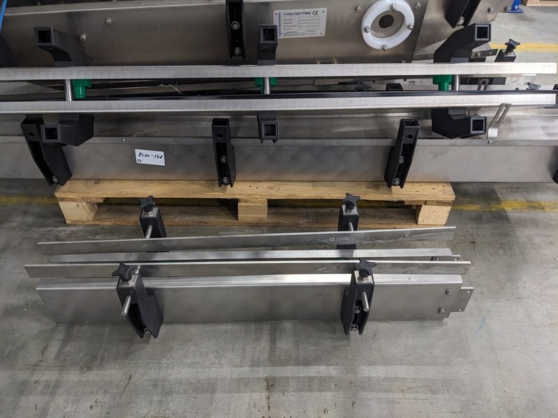 Merk: Polyketting Product: Partij transportketting huizen Materiaal: RVS Afmeting: circa 12 meter82/88mm Conditie: nieuw Specificaties: 1 pallet met divers onderdelen voor kettingbanen, 2x 45 graden bocht, eindstuk, overgang, diverse tussenstukken van 3 meter, 2 meter, 1,5 meter, 1 meter. Totaal circa 12 meter met zijgeleiding steunen, ongebruikt