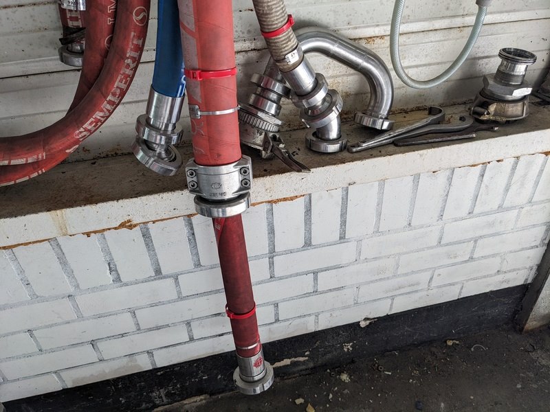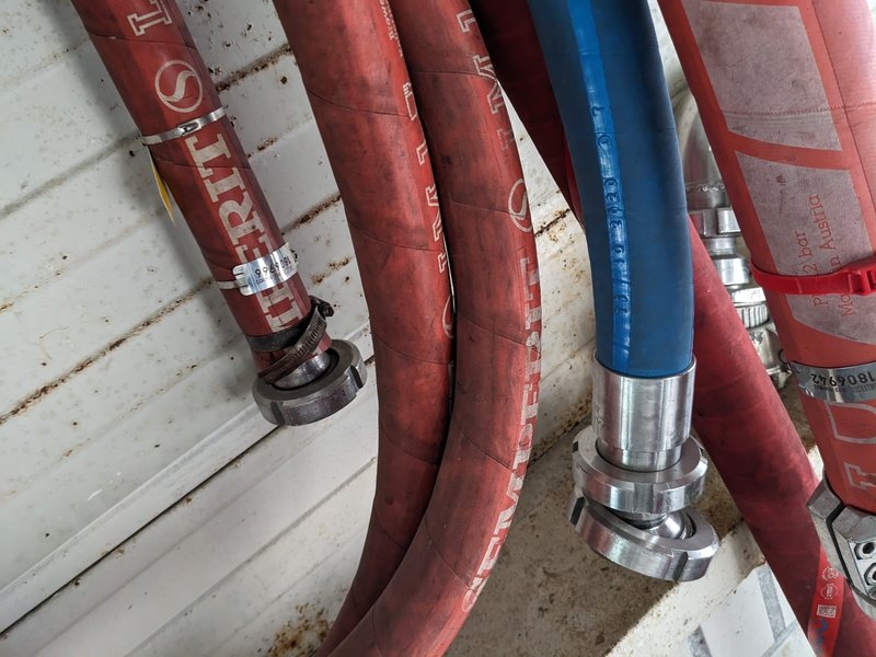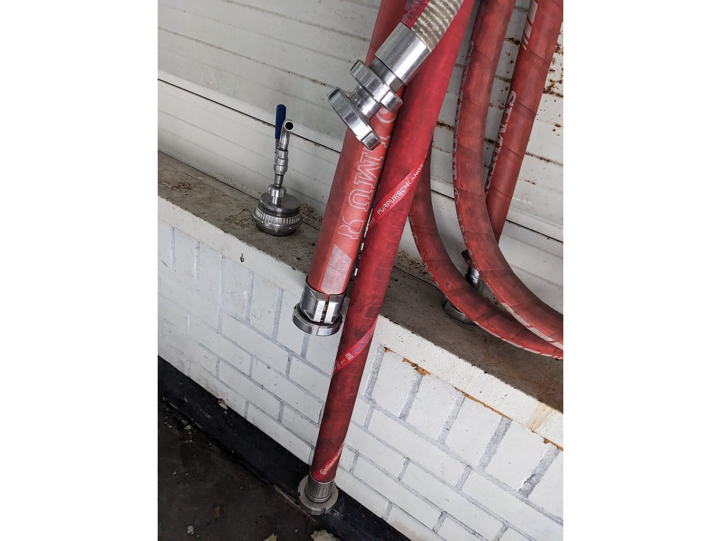 Product: Partij slangen met koppelingen Specificaties: diverse koppelslangen, circa 5 stuks met DN40 en DN50 koppelingen en losse toebehoren