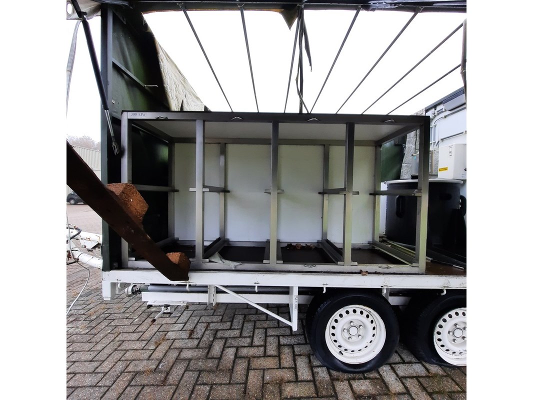 Product: Huifaanhanger met diverse apparatuur Afmeting: LxBxH ca. 550x200x230 cm. Conditie: gebruikt Specificaties: Chassisnummer: 4736473042 Verdere technische staat en compleetheid van de aanhanger en apparatuur onbekend. 1x band lek