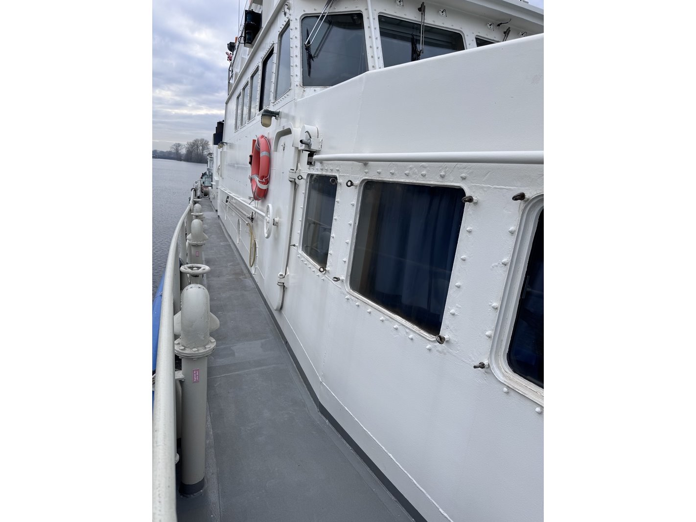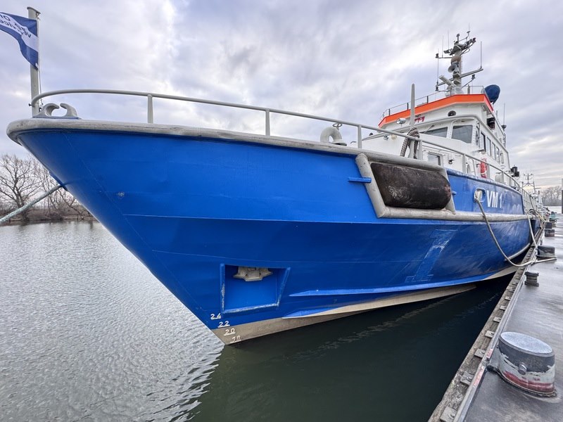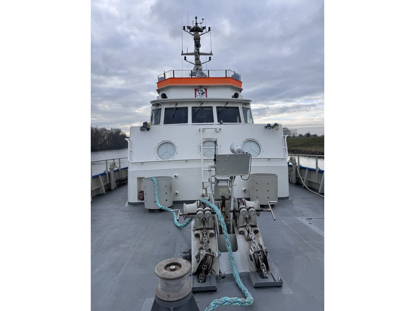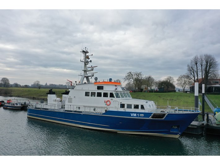Product: Kust patrouille vaartuig BouwJaar: 1992 Conditie: Gebruikt Specificaties: Kust patrouille vaartuig Is gebouwd bij de Fassmer werf voor de politie in Hamburg en Cuxhaven. Heeft daar tot Juli 2025 dienst gedaan. Laatste droogdok was in Juni 2025. Schip is onder klasse DNV geldig tot Mei 2027. Algemeen Bouwjaar: 1992 Type vaartuig: Patrouille- / bemannings- / surveyvaartuig Klasse: DNV, geldig tot 30 april 2027 Afmetingen Lengte over alles: 29,58 m Breedte over alles: 6,40 m Diepgang: 2,00 m Snelheid Maximale snelheid: 22 knopen Voortstuwingssysteem Hoofdmotoren: • 2 x Deutz TBD 616 V12 • 1 x Deutz TBD 234 V12 Vermogen: 3 x 660 kW Keerkoppelingen: Reintjes, type ZWYS 440 Draaiuren BB en SB motor: ca. 5700 uur na revisie. Mid motor: ca. 6000 uur na revisie. Generatoren: ca. 15.300 uur na revisie. Hulpsystemen 2 x Deutz BF4L hulpgeneratoren, 2 x 38,4 kW Tankcapaciteiten Brandstof: 10.450 liter Zoet water: 3.000 liter Smeerolie: 230 liter Nautische uitrusting VHF Sailor 1 x JRC zee-radar 1 x JRC rivier-radar Elektronisch kaartsysteem Transas 1 x Anschütz automatische piloot Simrad S3009 echolood GPS Furuno GP-150 AIS Saab Satellietkompas Magnetisch kompas Alphatron windindicator Dekuitrusting Hydraulische ankerlier Slipway achter voor het te water laten van een bijboot Flybridge FiFi-monitor Accommodatie 7 slaapplaatsen in 5 hutten (uitbreidingsmogelijkheid) 2 toiletten 1 douche Kombuis In overleg is transport naar een zeehaven binnen de EU mogelijk