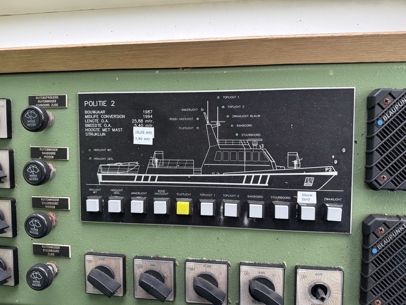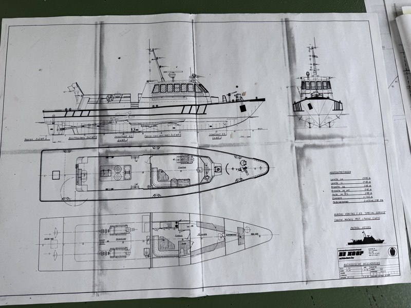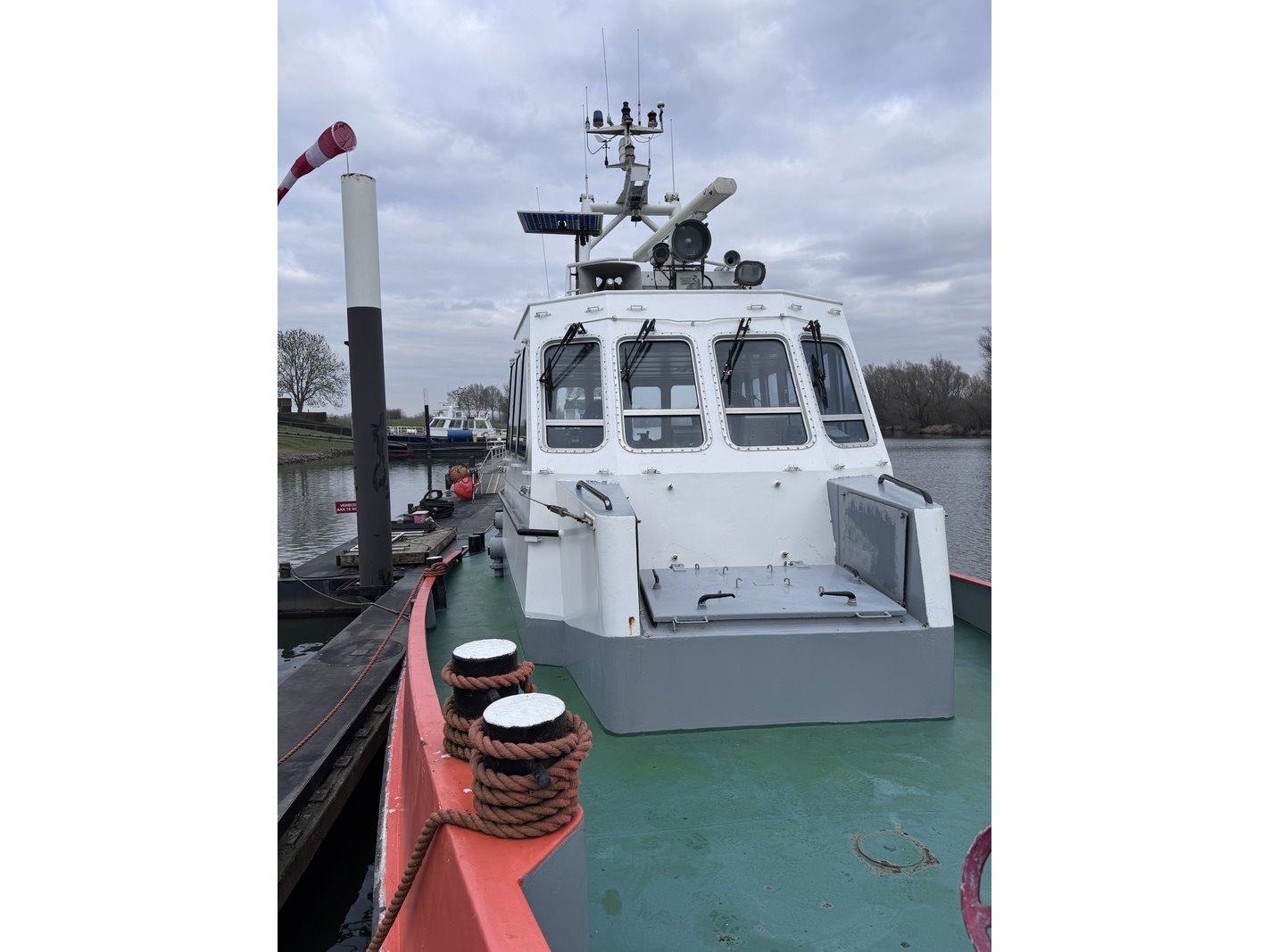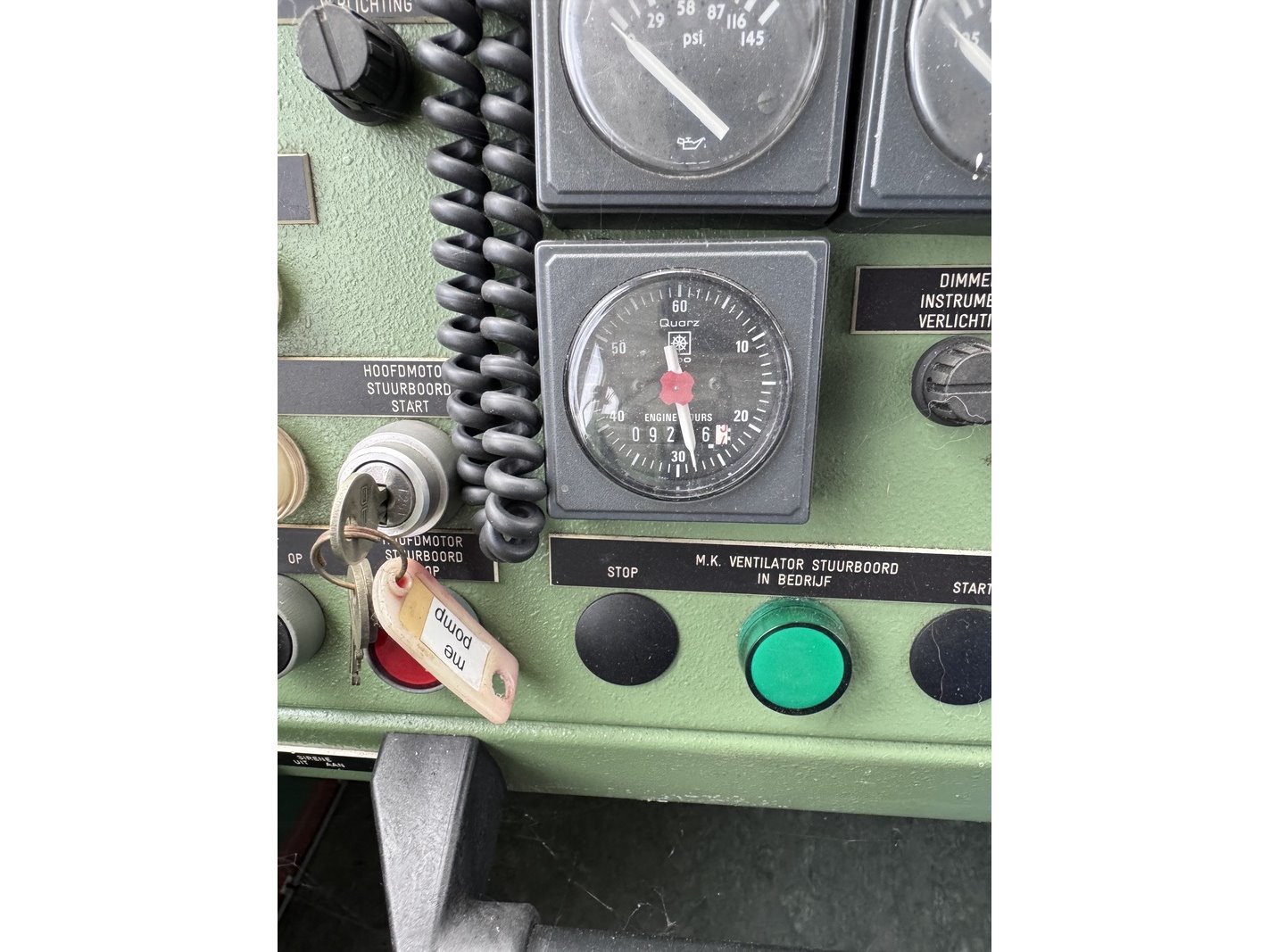 Product: Nederlandse patrouille vaartuig BouwJaar: 1987 Conditie: Gebruikt Specificaties: Dat Nederlandse patrouille vaartuig is gebouwd bij scheepswerf De Hoop, Nederland. Schip is door de Nederlandse politie gebruikt vooral in haven gebied Rotterdam. In Januari 2024 voor laatst in droogdock geweest en voorzien van nieuwe coating/antifauling en anodes. Verder is deze zonder geldige papieren. Algemeen Bouwjaar: 1987 Type schip: Patrouille- / Surveyvaartuig (onderzoeksschip) Afmetingen Lengte over alles: 25,93 m Breedte over alles: 5,42 m Diepgang: 1,60 m Snelheid Max. snelheid: 17 knopen Constructie Materiaal: Stalen romp / aluminium opbouw Voortstuwing Hoofdmotoren: 2 x MTU 12V 183TE61 Vermogen: 2 x 605 BHP Keerkoppelingen: Reintjes WAF 340 Schroefdiameter: 1 m Hulpinstallaties Generator: Hatz silent pack 4L41C – 20 kVA Tankcapaciteiten Brandstof: 4.300 liter Zoet water: 700 liter Brandstofverbruik Ca. 100 liter/uur Actieradius Ongeveer 700 nautische mijl Nautische uitrusting 1 x VHF Sailor 1 x Radar JRC Elektronisch kaartsysteem Alphatron 1 x Robertson AP45 autopilot 1 x Raytheon NAV398 GPS-navigator 1 x Navtex Echolood GPS Gyrokompas In overleg is transport naar een zeehaven binnen de EU mogelijk