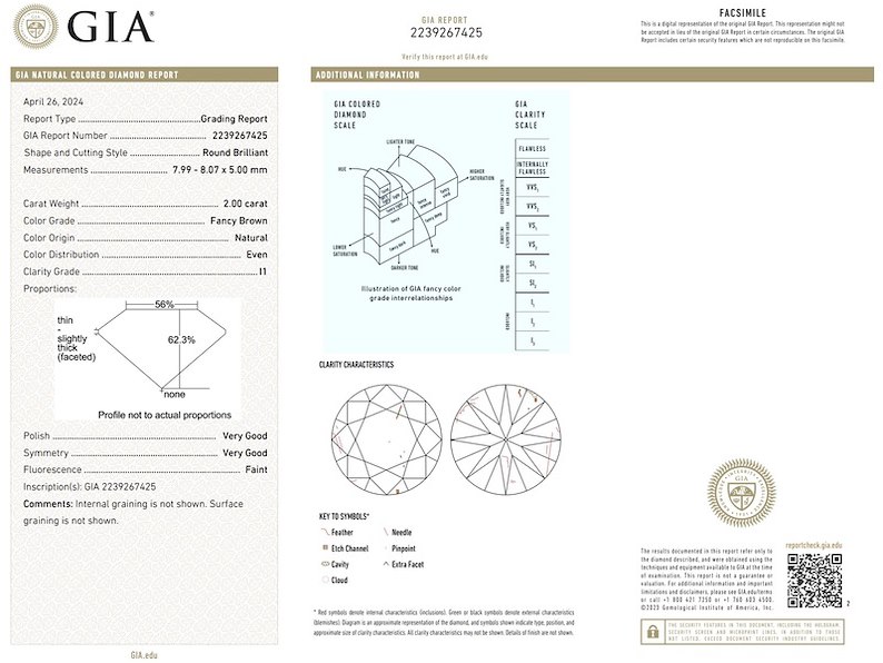 Product: Diamant - 2.00 carat natuurlijke briljant geslepen diamant (gecertificeerd) Specificaties: Diamant: Natuurlijk Aantal: 1 stuk Slijpvorm: Briljant geslepen Gewicht (carat): 2.00 carat Kleur: Natural fancy brown Zuiverheid: I1 Slijpkwaliteit: Very good Certificaat: GIA Certificaat nummer: 2239267425 Conditie: Nieuw Verpakking: Edelsteendoos Toelichting: De kwaliteit is overgenomen van het rapport behorend bij item. De waardebepaling is een beoordeling van een gecertificeerde diamantair, gebaseerd op consumentenprijzen. Consumentenprijs: € 16.000,-