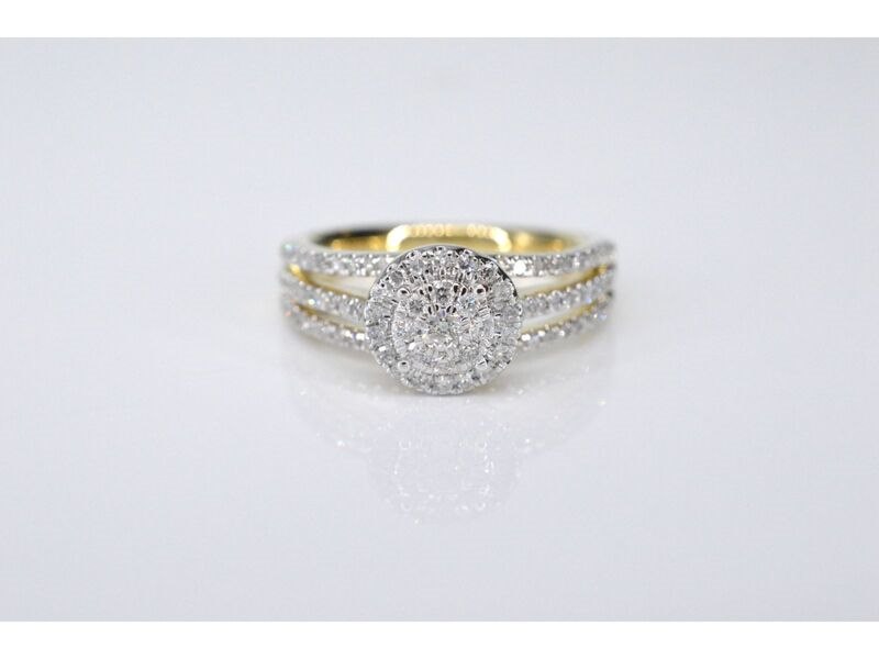 Product: Gouden entourage ring met diamanten Specificaties: Diamant: Natuurlijk Slijpvorm: Briljant en rond geslepen Gewicht (carat): 0.75 carat Kleur: F-G Zuiverheid: SI-P Slijpkwaliteit: Zeer mooi Juweel: Ring Gewicht: 6 gram Ringmaat (op maat gemaakt*): 54 (17.25 mm) Materiaal: 14 karaat (585) Conditie: Nieuw Verpakking: Luxe sieradendoos Toelichting: De kwaliteit is overgenomen van het rapport behorend bij item. De waardebepaling is een beoordeling van een gecertificeerde diamantair, gebaseerd op consumentenprijzen. Consumentenprijs: € 4.078,-
