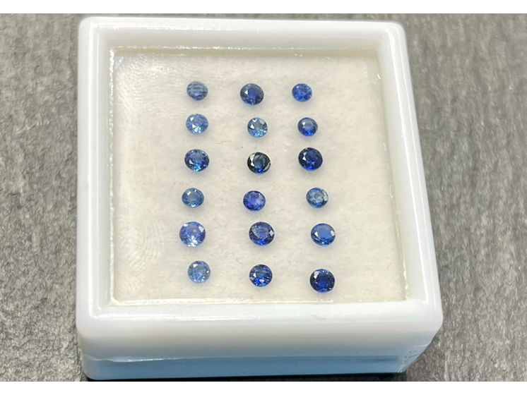 Product: Saffier - Rond geslepen natuurlijke saffieren 2.00 carat Specificaties: Edelsteen: Saffier Aantal: 18 stuks Slijpvorm: Rond geslepen Gewicht (carat): 2.00 carat Kleur: Blauw Zuiverheid: Met natuurlijke insluitsels Slijpkwaliteit: Very good Conditie: Nieuw Verpakking: Edelsteendoos Toelichting: De kwaliteit is overgenomen van het rapport behorend bij item. De waardebepaling is een beoordeling van een gecertificeerde diamantair, gebaseerd op consumentenprijzen. Consumentenprijs: € 1.760,-