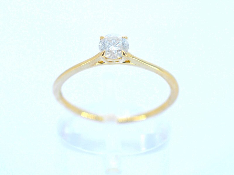 Product: Gouden ring solitair met natuurlijke briljant geslepen diamanten Specificaties: Diamant: Natuurlijk Aantal: 1 stuk Slijpvorm: Briljant geslepen Gewicht (carat): 0.36 carat Kleur: Wit Zuiverheid: Met natuurlijke insluitsels Slijpkwaliteit: Zeer mooi Juweel: Ring Gewicht: 1 gram Ringmaat (op maat gemaakt*): 54 (17.25 mm) Materiaal: 14k goud (585) Conditie: Nieuw Verpakking: Luxe sieradendoos Toelichting: De kwaliteit is overgenomen van het rapport behorend bij item. De waardebepaling is een beoordeling van een gecertificeerde diamantair, gebaseerd op consumentenprijzen. Consumentenprijs: € 1.420,-