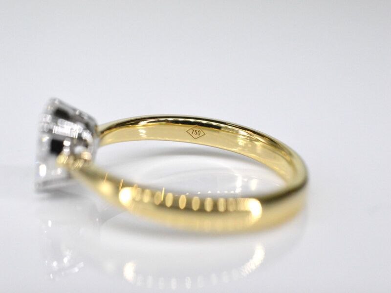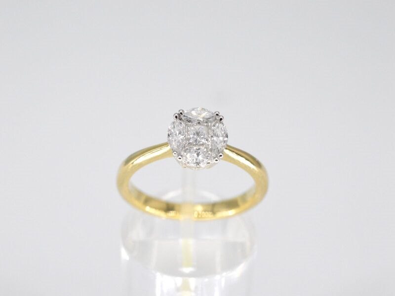 Product: Gouden ring met prinses en marquise geslepen natuurlijke diamanten Specificaties: Diamant: Natuurlijk Slijpvorm: Prinses en marquise geslepen Gewicht (carat): 0.60 carat Kleur: F-G Zuiverheid: VS Slijpkwaliteit: Zeer mooi Juweel: Ring Gewicht: 3 gram Ringmaat (op maat gemaakt*): 53 (17 mm) Materiaal: 18K goud (750) Conditie: Nieuw Verpakking: Luxe sieradendoos Toelichting: De kwaliteit is overgenomen van het rapport behorend bij item. De waardebepaling is een beoordeling van een gecertificeerde diamantair, gebaseerd op consumentenprijzen. Consumentenprijs: € 6.300,-