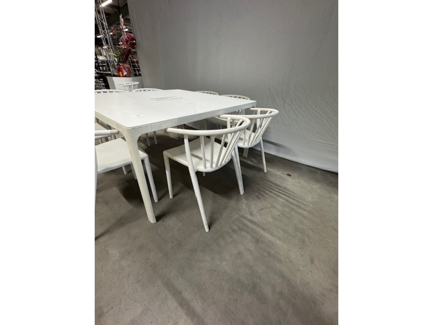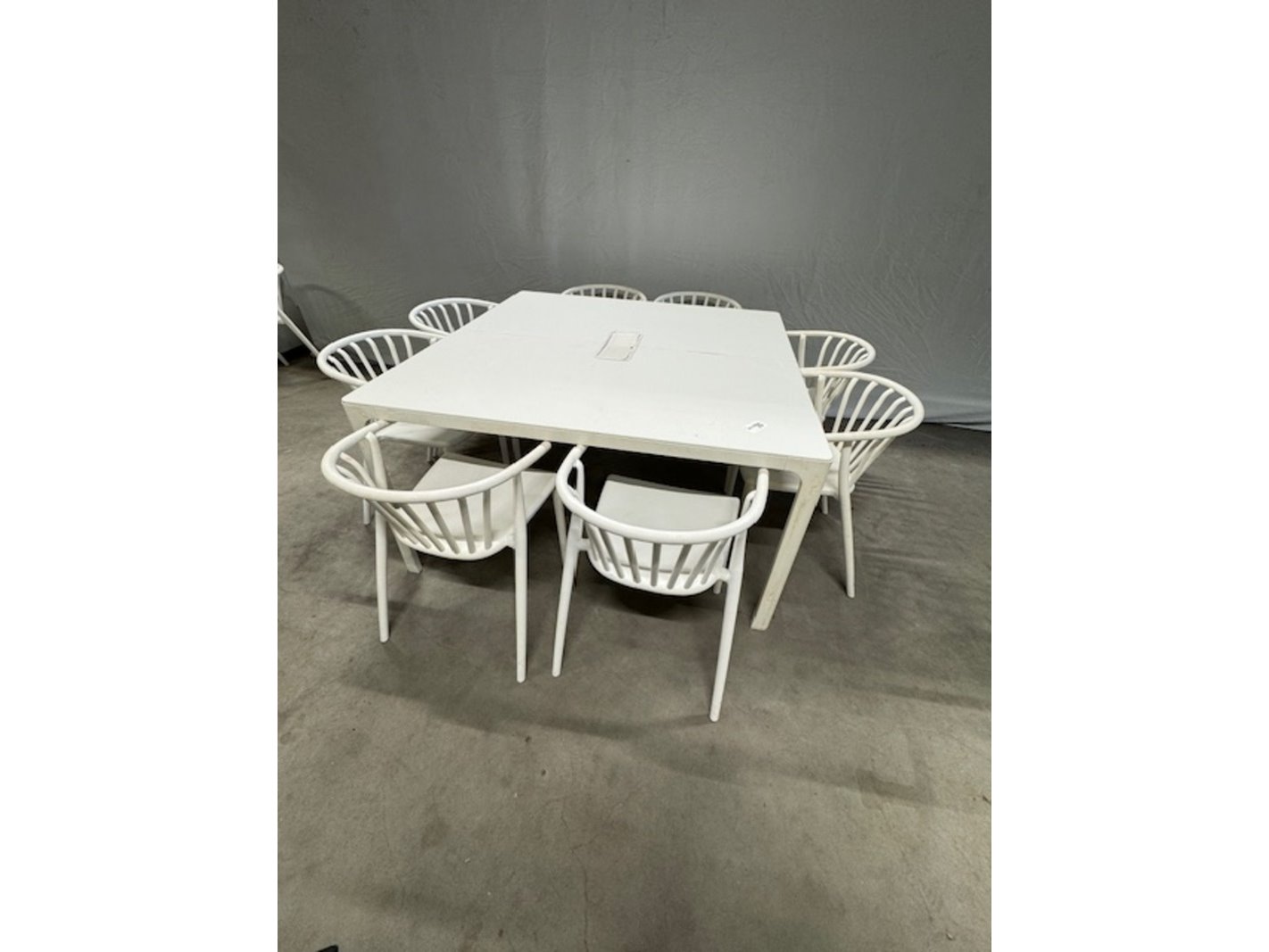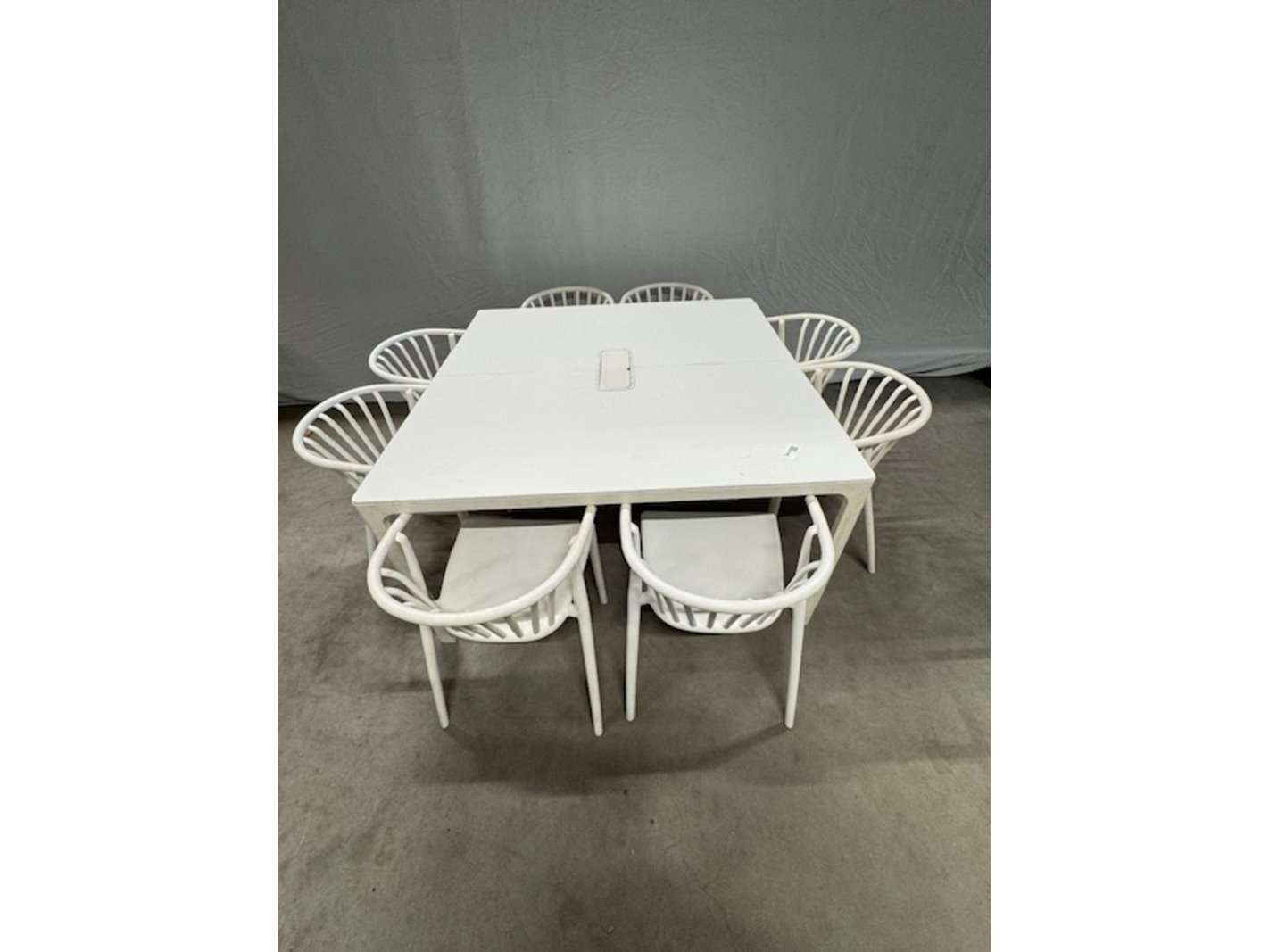 Product: tafel met 8 stoelen Kleur: wit Afmeting: bxdx ca.