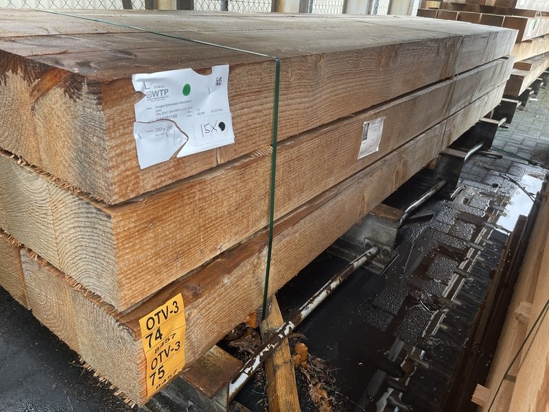 5x douglas balken fijnbezaagd, 200x200mm, lengte 400cm