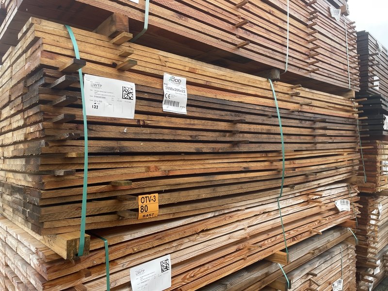 Ca. 133x douglas planken fijnbezaagd, 22x200mm, lengte 300cm
