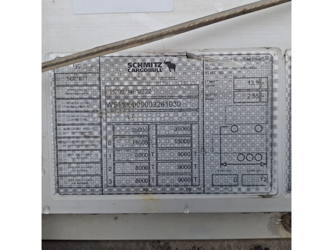 Merk: Schmitz Cargobull Product: Oplegger Afmeting: Lengte 13.9 meter / Breedte 2.55 meter Conditie: gebruikt Specificaties: Kenteken: Niet geregistreerd Eerste toelating nationaal: Niet geregistreerd VIN nummer: WSM00000003261030 Waargenomen gebreken Diverse gebruikssporen rondom