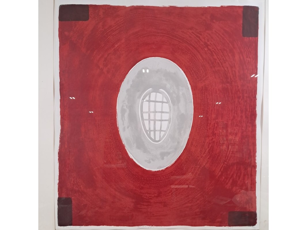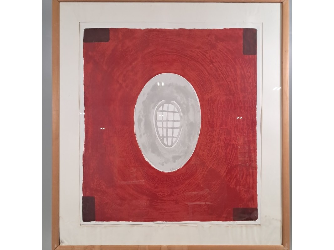 Merk: Piet Warffemius Product: Zeefdruk Afmeting: hxb ca. 128x118 cm BouwJaar: 1997 Specificaties: Lijst ligt los.