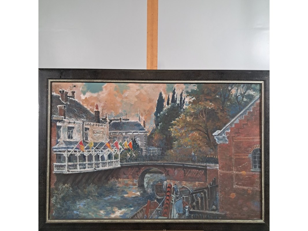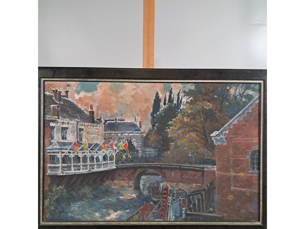 Merk: H.L. Maas Product: Schilderij Afmeting: hxb ca. 77x112 cm BouwJaar: 1959 Specificaties: