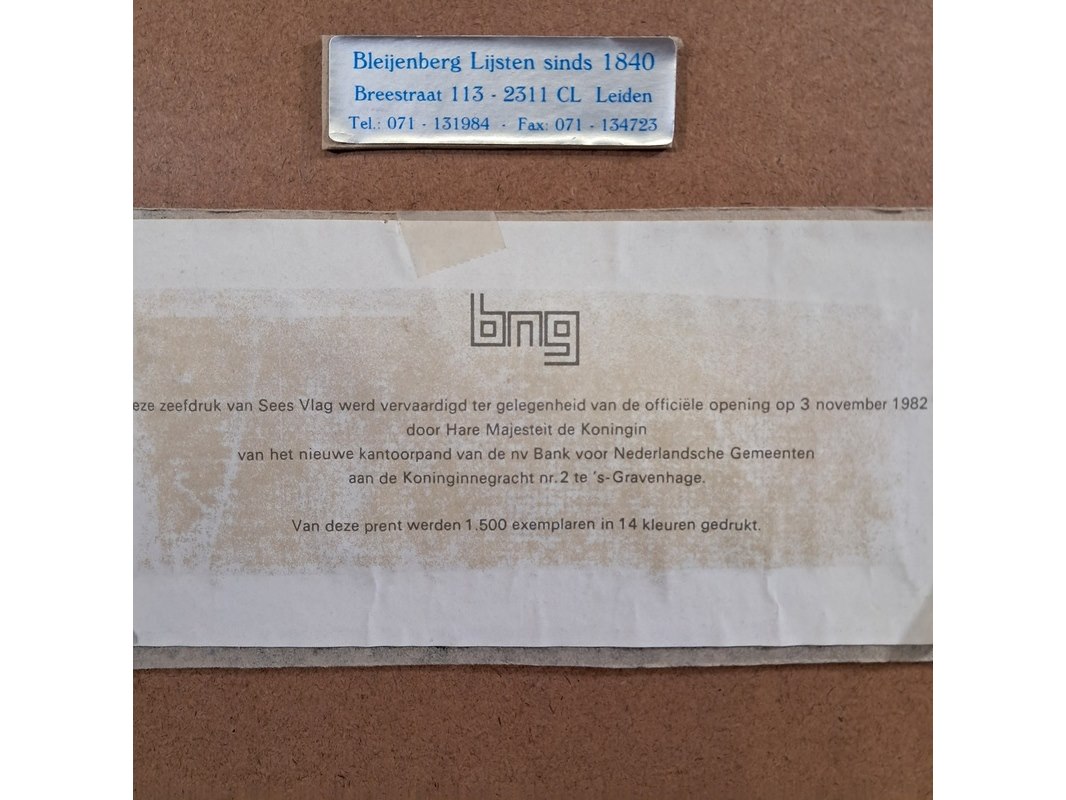Merk: Sees Vlag Product: Zeefdruk Afmeting: hxb ca. 65x81 cm BouwJaar: 1982 Specificaties: