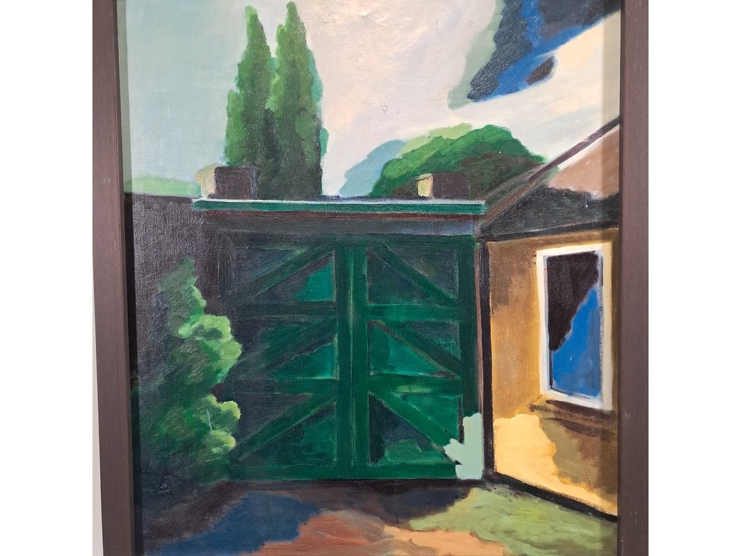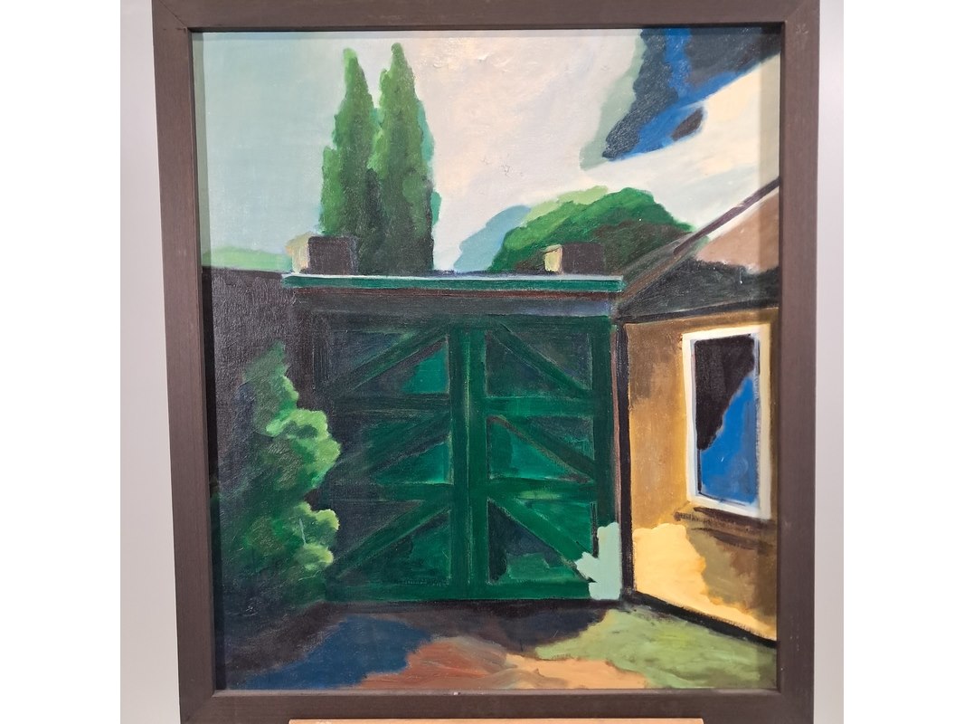 Olieverf schilderij op doek, h. dister, tuin met poort