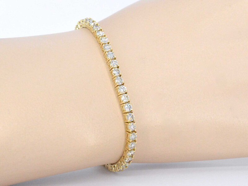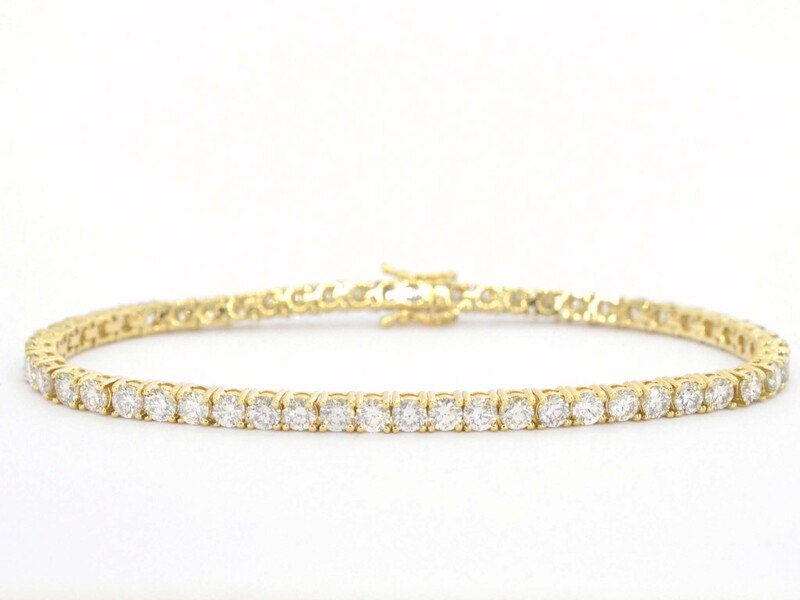 Product: Gouden tennis armband met 6.50 carat diamanten Specificaties: Diamant: Natuurlijk Aantal: 56 stuks Slijpvorm: Briljant geslepen Gewicht (carat): 6.50 carat Kleur: H-I Zuiverheid: VVS Slijpkwaliteit: Excellent Juweel: Armband Gewicht: 13.8 gram Afmetingen/lengte: 18 cm Materiaal: 18K goud (750) Conditie: Nieuw Verpakking: Luxe sieradendoos Toelichting: De kwaliteit is overgenomen van het rapport behorend bij item. De waardebepaling is een beoordeling van een gecertificeerde diamantair, gebaseerd op consumentenprijzen. Consumentenprijs: € 27.563,-