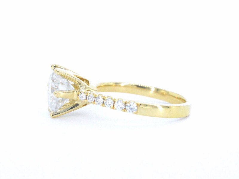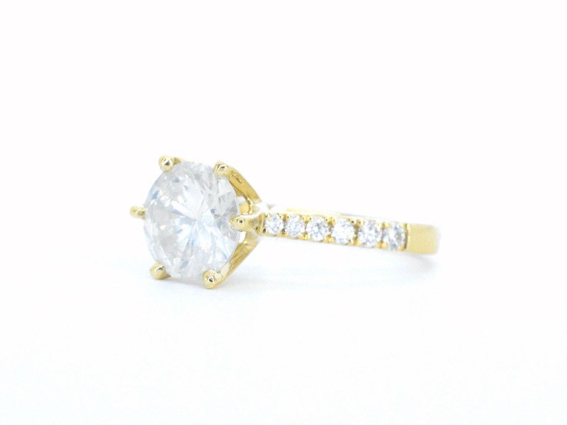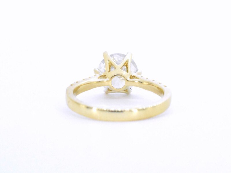 Product: Gouden ring met diamant Specificaties: Diamant: Natuurlijk Aantal: 1 stuk Slijpvorm: Briljant geslepen Gewicht (carat): 2.00 carat Kleur: Mooi wit Zuiverheid: Met veel natuurlijke insluitsels Slijpkwaliteit: Zeer mooi Diamant (secundair): Diamanten Aantal diamanten: 12 stuks Slijpvorm: Briljant geslepen Gewicht (carat): 0.25 carat Kleur: F-G Zuiverheid: VS Slijpkwaliteit: Heel goed Juweel: Ring Gewicht: 4 gram Ringmaat (op maat gemaakt*): 53 (17 mm) Materiaal: 18K goud (750) Conditie: Zo goed als nieuw Verpakking: Luxe sieradendoos Toelichting: De kwaliteit is overgenomen van het rapport behorend bij item. De waardebepaling is een beoordeling van een gecertificeerde diamantair, gebaseerd op consumentenprijzen. Consumentenprijs: € 20.650,-