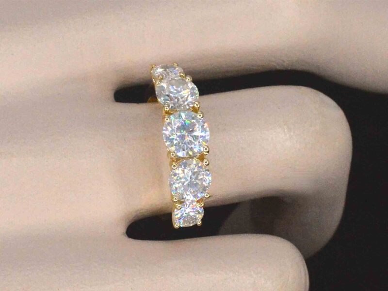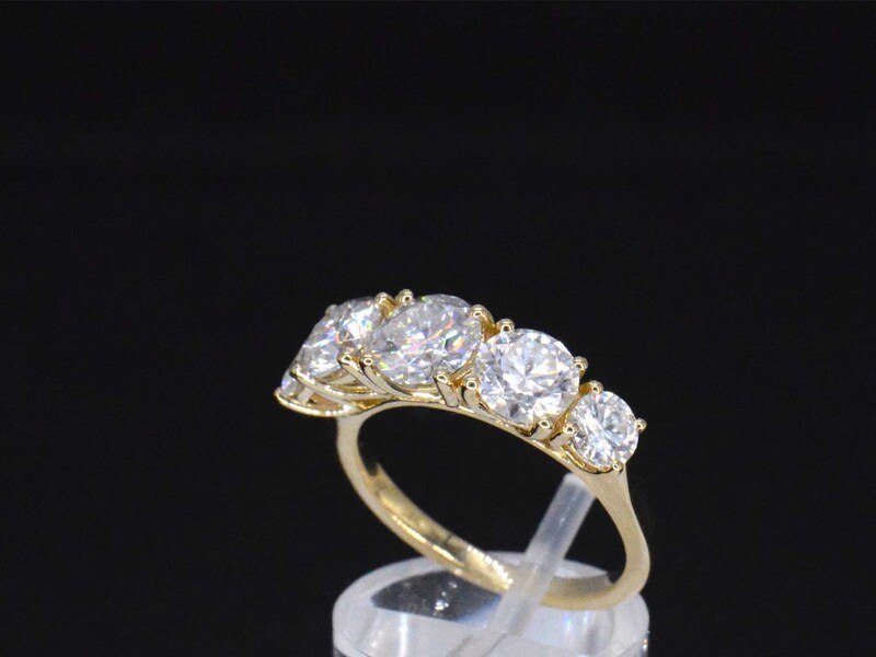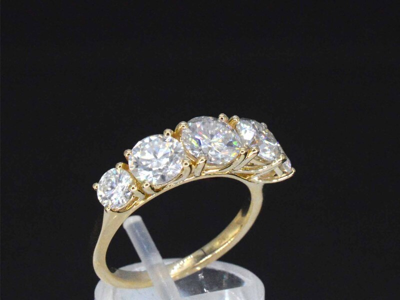 Product: Gouden ring met 2.90 carat briljanten Specificaties: Edelsteen: Moissaniet Aantal: 1 stuk Slijpvorm: Briljant geslepen Gewicht (carat): 0.90 carat Kleur: D Zuiverheid: FL Slijpkwaliteit: Excellent Edelsteen (secundair): Moissaniet Aantal: 2 stuks Slijpvorm: Briljant geslepen Gewicht (carat): 0.70 carat Kleur: D Zuiverheid: FL Slijpkwaliteit: Excellent Edelsteen (secundair): Moissaniet: 1 stuk Slijpvorm: Briljant geslepen Gewicht (carat): 0.70 carat Kleur: D Zuiverheid: FL Slijpkwaliteit: Excellent Edelsteen (secundair): Moissaniet: 2 stuks Slijpvorm: Briljant geslepen Zuiverheid: VS Juweel: Ring Gewicht: 4 gram Ringmaat (op maat gemaakt*): 54 (17.25 mm) Materiaal: 18k goud (750) Conditie: Nieuw Verpakking: Luxe sieradendoos Toelichting: De kwaliteit is overgenomen van het rapport behorend bij item. De waardebepaling is een beoordeling van een gecertificeerde diamantair, gebaseerd op consumentenprijzen. Consumentenprijs: € 3.080,-