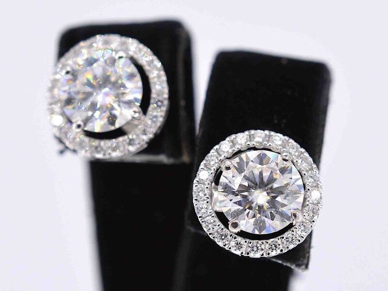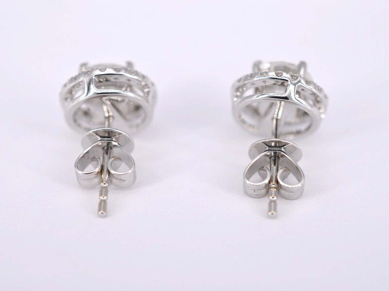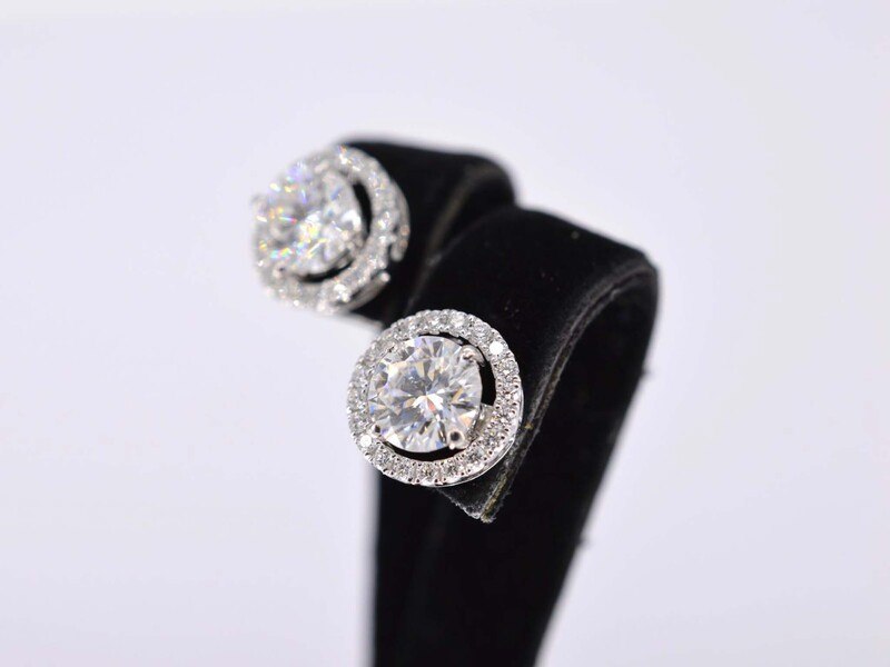 Product: Witgouden diamanten entourage oorbellen van 1.80 carat Specificaties: Diamant: Natuurlijk Aantal: 2 stuks Slijpvorm: Briljant geslepen Gewicht (carat): 1.80 carat Kleur: D-E Zuiverheid: SI Slijpkwaliteit: Zeer mooi Diamant (secundair): Entourage Aantal diamanten: 50 stuks Gewicht (carat): 0.90 carat Kleur: F Zuiverheid: VS Juweel: Oorbellen Gewicht: 4 gram Materiaal: 18K goud (750) Conditie: Nieuw Verpakking: Luxe sieradendoos Toelichting: De kwaliteit is overgenomen van het rapport behorend bij item. De waardebepaling is een beoordeling van een gecertificeerde diamantair, gebaseerd op consumentenprijzen. Consumentenprijs: € 22.400,-