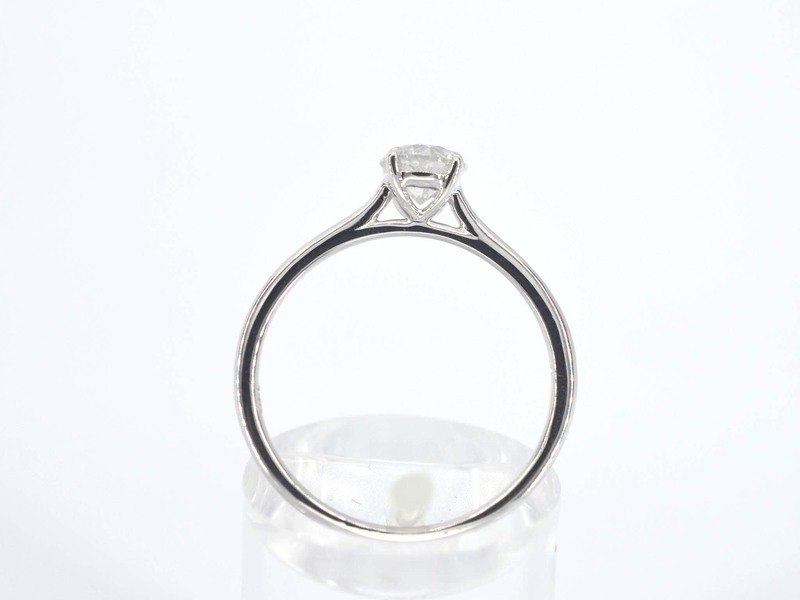 Product: Witgouden ring solitair met natuurlijke briljant geslepen diamanten Specificaties: Diamant: Natuurlijk Aantal: 1 stuk Slijpvorm: Briljant geslepen Gewicht (carat): 0.65 carat Kleur: Wit Zuiverheid: Met natuurlijke insluitsels Slijpkwaliteit: Zeer mooi Juweel: Ring Gewicht: 1 gram Ringmaat (op maat gemaakt*): 54 (17.25 mm) Materiaal: 14k goud (585) Conditie: Nieuw Verpakking: Luxe sieradendoos Toelichting: De kwaliteit is overgenomen van het rapport behorend bij item. De waardebepaling is een beoordeling van een gecertificeerde diamantair, gebaseerd op consumentenprijzen. Consumentenprijs: € 2.000,-
