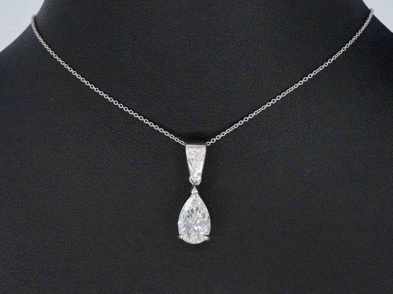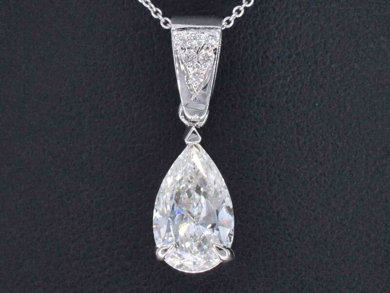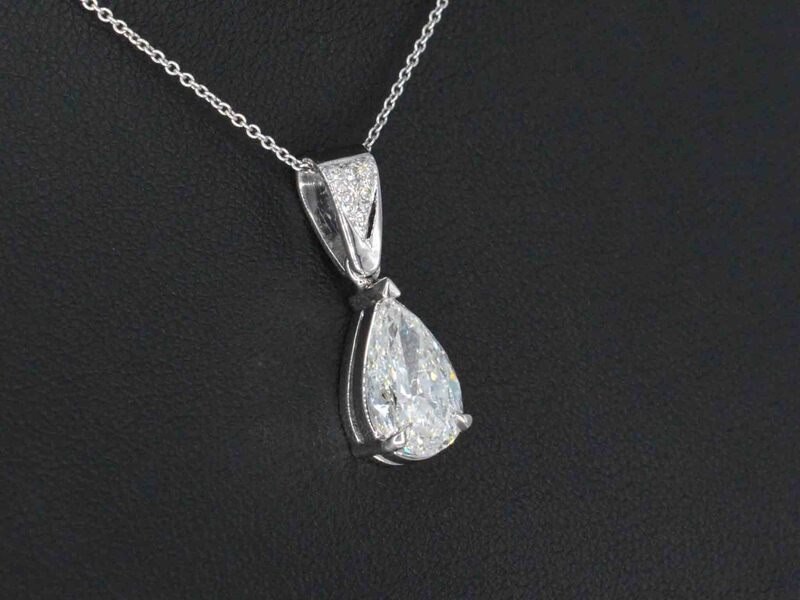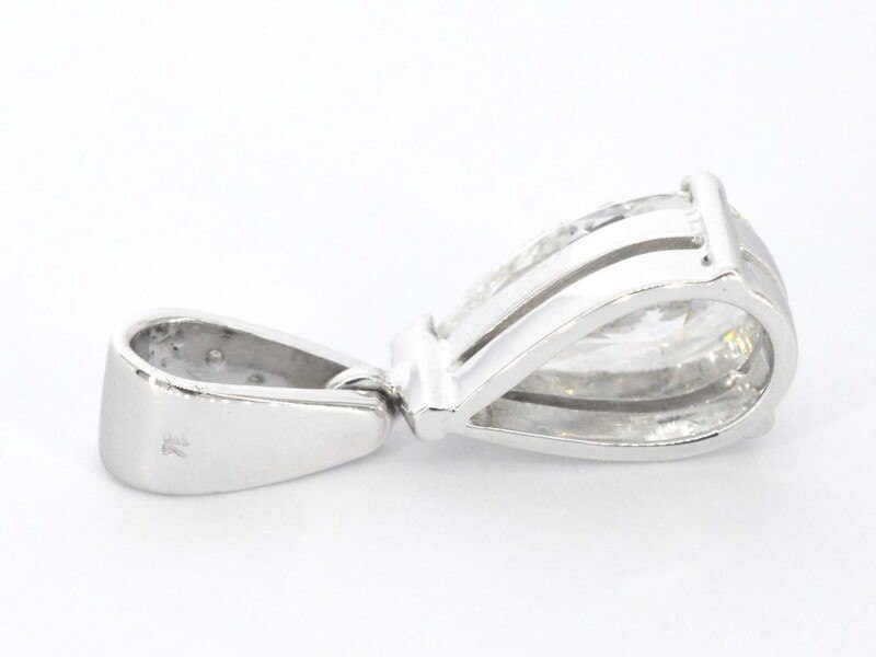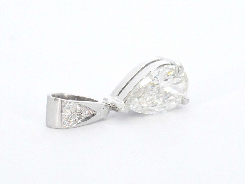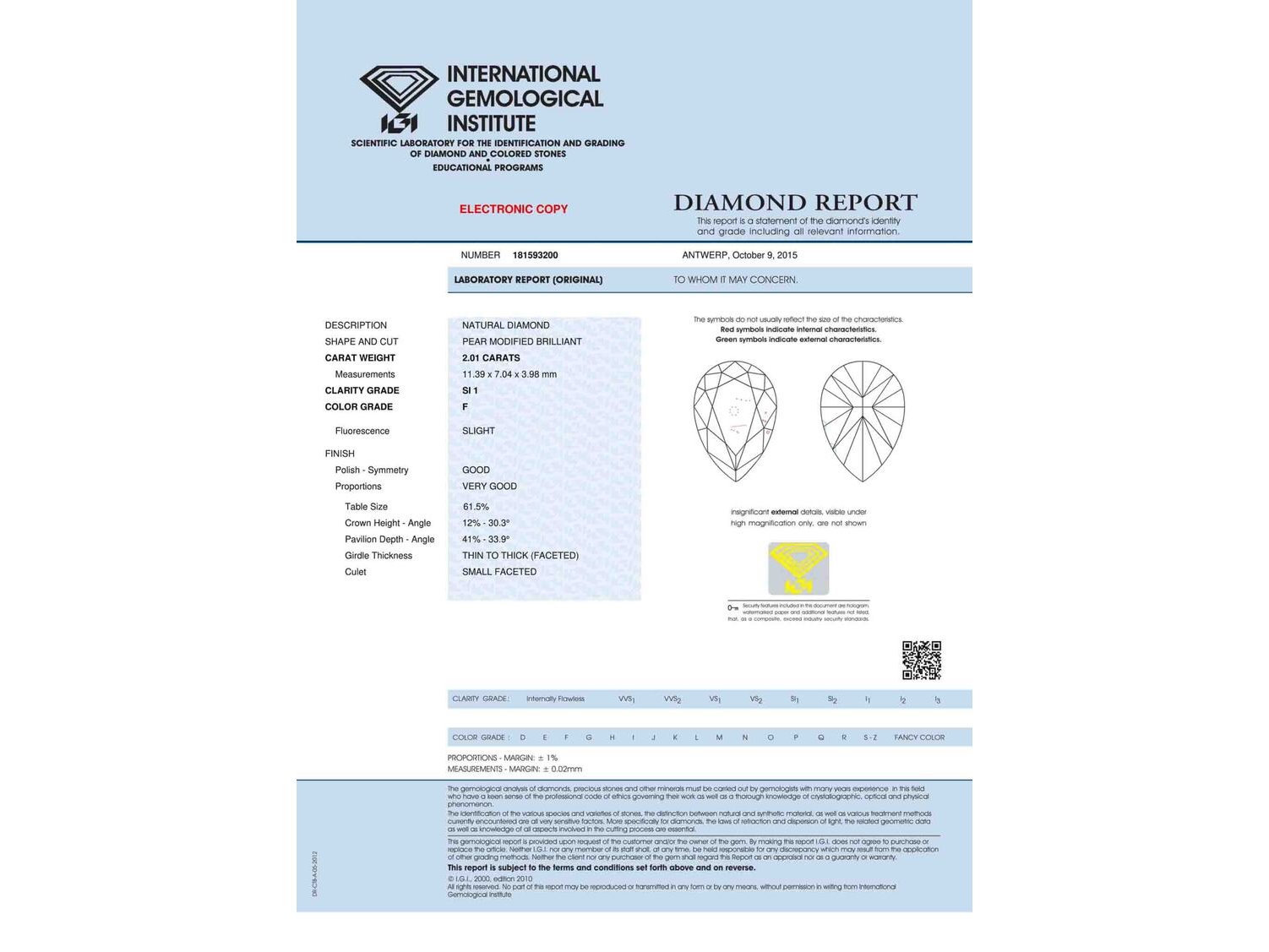 Product: Grote peer shape diamant in een witgouden hanger van 2.01 carat Specificaties: Diamant: Natuurlijk Aantal: 1 stuk Slijpvorm: pear shape Gewicht (carat): 2.01 carat Kleur: F Zuiverheid: SI1 Certificaat: IGI Certificaat nummer: 181593200 Diamant (secundair): Diamanten: In de Hanger Slijpvorm: Briljant geslepen Gewicht (carat): 0.10 carat Kleur: F-G Zuiverheid: VS Juweel: Hanger (excl. ketting) Gewicht: 2.7 gram Materiaal: 18K goud (750) Conditie: Nieuw Verpakking: Luxe sieradendoos Toelichting: De kwaliteit is overgenomen van het rapport behorend bij item. De waardebepaling is een beoordeling van een gecertificeerde diamantair, gebaseerd op consumentenprijzen. Consumentenprijs: € 63.000,-