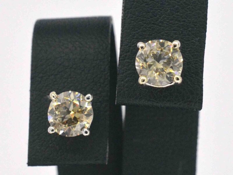 Product: Witgouden solitair oorbellen met champagne diamant 3.00 carat Specificaties: Diamant: Natuurlijk Aantal: 2 stuks Slijpvorm: Briljant geslepen Gewicht (carat): 3.00 carat Kleur: Commercial colour (X) Zuiverheid: P1 Slijpkwaliteit: Zeer mooi Juweel: Oorbellen Gewicht: 1 gram Materiaal: 18K goud (750) Conditie: Nieuw Verpakking: Luxe sieradendoos Toelichting: De kwaliteit is overgenomen van het rapport behorend bij item. De waardebepaling is een beoordeling van een gecertificeerde diamantair, gebaseerd op consumentenprijzen. Consumentenprijs: € 12.000,-
