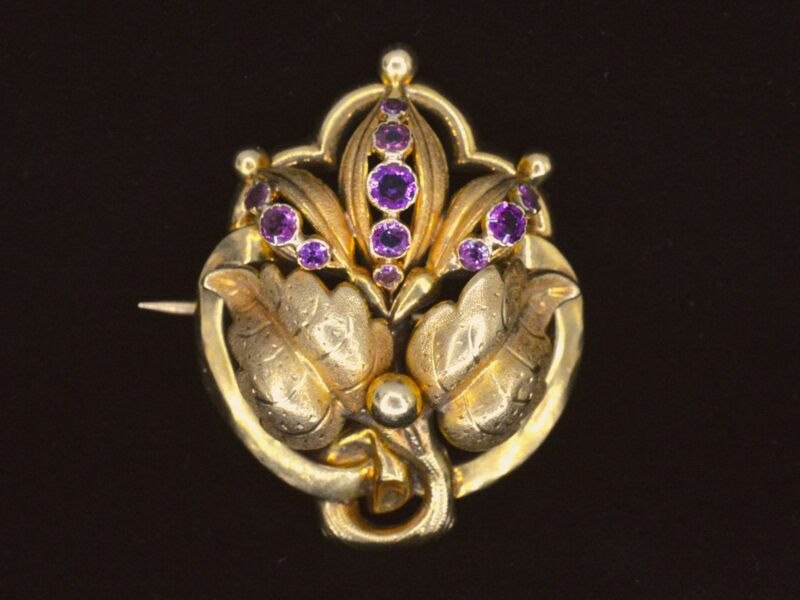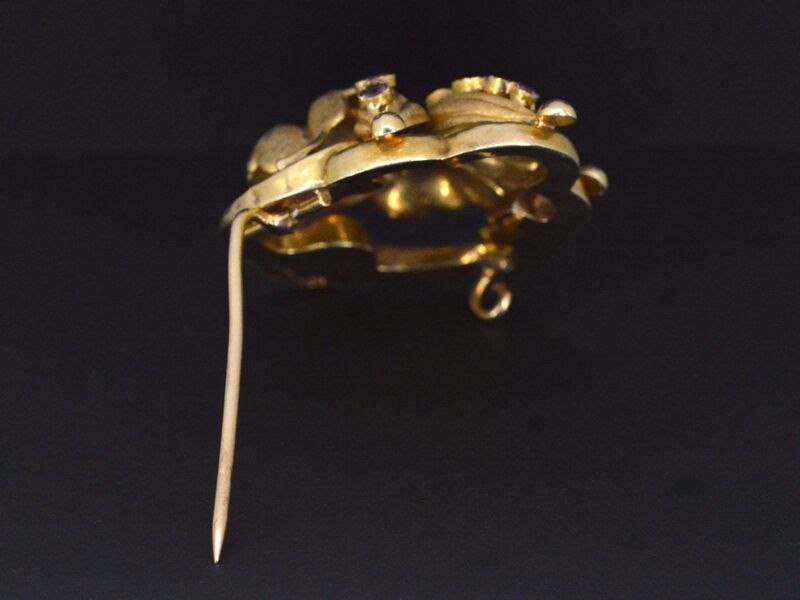 Product: Gouden broche met amethist Specificaties: Edelsteen: Hoge kwaliteit amethisten Slijpvorm: Rond geslepen Gewicht (carat): 1.00 carat Kleur: Paars Zuiverheid: Hoge kwaliteit Juweel: Broche Gewicht: 7 gram Afmetingen/lengte: 44x32 mm Materiaal: 18k goud (750) Conditie: Vintage Verpakking: Luxe sieradendoos Toelichting: De kwaliteit is overgenomen van het rapport behorend bij item. De waardebepaling is een beoordeling van een gecertificeerde diamantair, gebaseerd op consumentenprijzen. Consumentenprijs: € 5.980,-