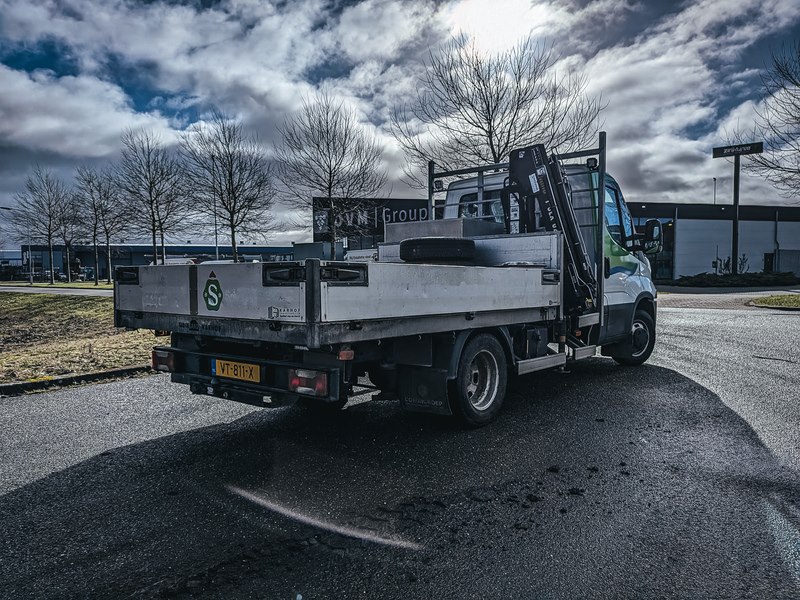 Merk: Iveco Product: Bedrijfsauto met kipfunctie & autolaadkraan BouwJaar: 2016 Conditie: Gebruikt Specificaties: Basis kenmerken Kenteken: VT-811-X Chassisnummer (VIN) : ZCFC235960D554211 Datum eerste toelating: 10 maart 2016 Vervaldatum APK: 10 januari 2027 Afgelezen tellerstand: 141.704 km Aantal zitplaatsen: 2 Aantal sleutels: 3 Motor, Prestaties & Milieu Brandstof: diesel Motorcode: F1AFL411B*A Aantal cilinders: 4 Cilinderinhoud: 2.287 cm³ Max. vermogen: 93 kW / 126 pk Transmissie: Automatisch Brandstofverbruik: 8,4 l/100km (gecombineerd NEDC) Emissiecode: Euro 5 Maten & Gewichten Voertuig breedte: 2.100 mm Wielbasis: 3.450 mm Massa rijklaar: 3.240 kg Max. massa voertuig: 3.500 kg Laadvermogen: 360 kg Aanhangwagen geremd: 3.500 kg Aanhangwagen ongeremd: 750 kg Specificaties (autolaadkraan) Merk: HIAB Type: 023 B-3 T-CLX Serienummer: BL23TCX00007 Bouwjaar: 2016 Bedieningssysteem: CLX Bereik hydraulische verlenging: 4.4 m Handmatig verlengingsbereik: 5.5 m Gewicht: 298 kg Zie laatste foto voor laaddiagram van autolaadkraan
