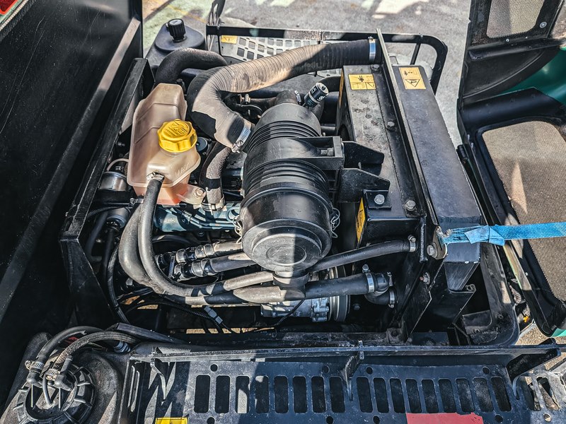 Merk: Ransomes Product: Cirkelmaaier BouwJaar: 2011 Conditie: Gebruikt Specificaties: Basiskenmerken Kenteken: TVZ-77-R Datum eerste toelating: 30 juni 2011 Afgelezen tellerstand: 364 h. Aantal sleutels: 1 Technische gegevens Motor: Kubota driecilinder diesel vermogen: 25 kW / 34 pk Rijaandrijving: Hydrostatisch Maaisnelheid: 0 - 18 km/h Transportsnelheid: 0 - 25 km/h Bediening maaidek: One-Touch joystick Maaibreedte: 1.520 of 1.830 mm Instelling maaihoogte: Verstelbaar op drie posities