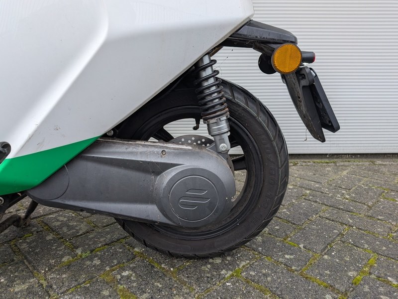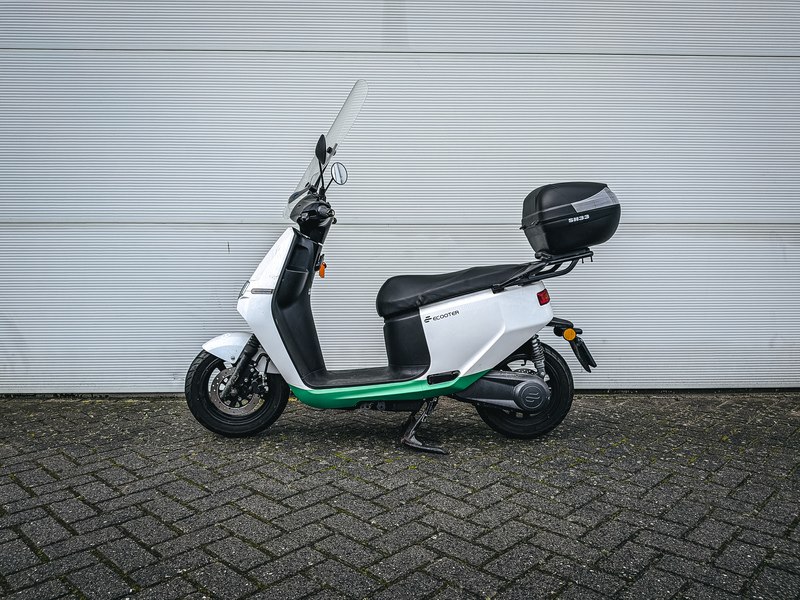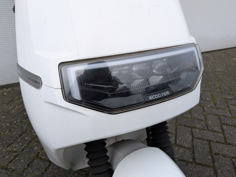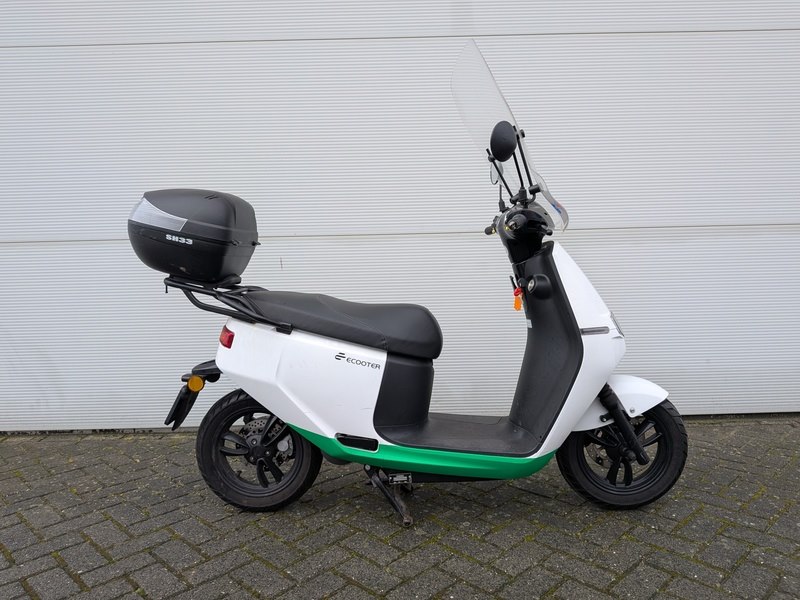 Merk: Ecooter Product: e-scooter BouwJaar: 2021 Specificaties: Basis kenmerken Kenteken: FJS-90-K Typegoedkeuringsnummer: e9*168/2013*11376*02 Chassisnummer (VIN) : R2BBF4012M1000390 Datum eerste toelating: 10 december 2021 Afgelezen tellerstand: 2.098 km Aantal sleutels: 1 Motor, Prestaties & Milieu Brandstof: elektrisch Motorcode: EB140ZW-J603140 Continue vermogen: 3 kW Max. constructiesnelheid: 25 km/h Maten & Gewichten Voertuig lengte: 1.840 mm Voertuig breedte: 750 mm Voertuig hoogte: 1.130 mm Wielbasis: 1.300 mm Massa rijklaar: 78 kg Inclusief • Acculader