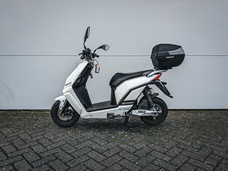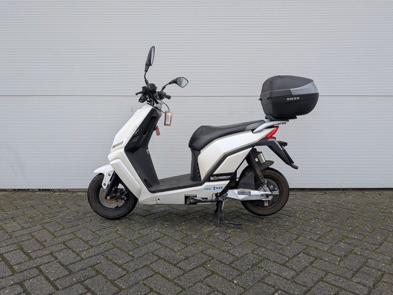 Merk: Lifan Product: e-scooter BouwJaar: 2018 Specificaties: Basis kenmerken Kenteken: DRB-49-S Datum eerste toelating: 12 juli 2018 Afgelezen tellerstand: 9.938 km Aantal sleutels: 1 Motor, Prestaties & Milieu Brandstof: elektrisch Motorcode: 10ZW6065317 Continue vermogen: 1 kW Max. constructiesnelheid: 25 km/h Maten & Gewichten Voertuig lengte: 1.680 mm Voertuig breedte: 750 mm Voertuig hoogte: 1.090 mm Wielbasis: 1.190 mm Massa rijklaar: 72 kg Inclusief • Acculader
